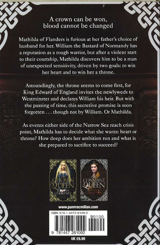 For William the Conqueror's bride, Mathilda, there is only one prize - the English throne.A crown can be won, blood cannot be changed.The Conqueror's Queen is the third title in Joanna Courtney's sweeping historical series, The Queens of Conquest. William of Normandy is a rough man, but what more can you expect of an illegitimate son trying to muscle his way into a dukedom? After a violent start to their courtship, Mathilda of Flanders discovers William to be a man of unexpected sensitivity, driven by two goals: to prove himself by becoming a great ruler and to build a warm and secure family. Mathilda has grown up safe in the love of her powerful parents, her rough and tumble brothers and, above all, her younger sister and closest confidante, Judith. Now, though, they must separate. Judith marries the glamorous Earl Torr and departs for life in England and Mathilda heads to Normandy with William. When William's cousin King Edward of England weakens, his eyes are cast across the narrow sea to the glittering throne he promised Mathilda as a young bride. Mathilda supports him keenly in his challenge, longing to live close to her sister once more. But as reward for his support for William, Torr wants more than William is prepared to cede and there will be no alliance. The two sisters find themselves not only on either side of a sea but of a bitter battle, and the events of 1066 bring great personal loss, as well as victory, to the Conqueror's Queen.