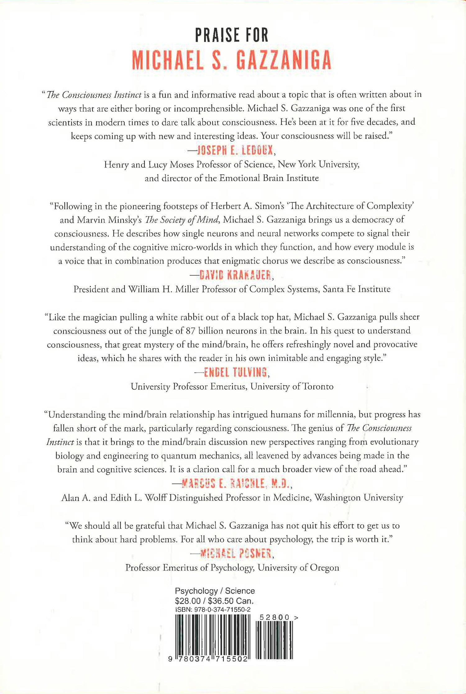 Captivating and accessible, with insights drawn from a lifetime at the forefront of the field, The Consciousness Instinct sets the course for the neuroscience of tomorrow.