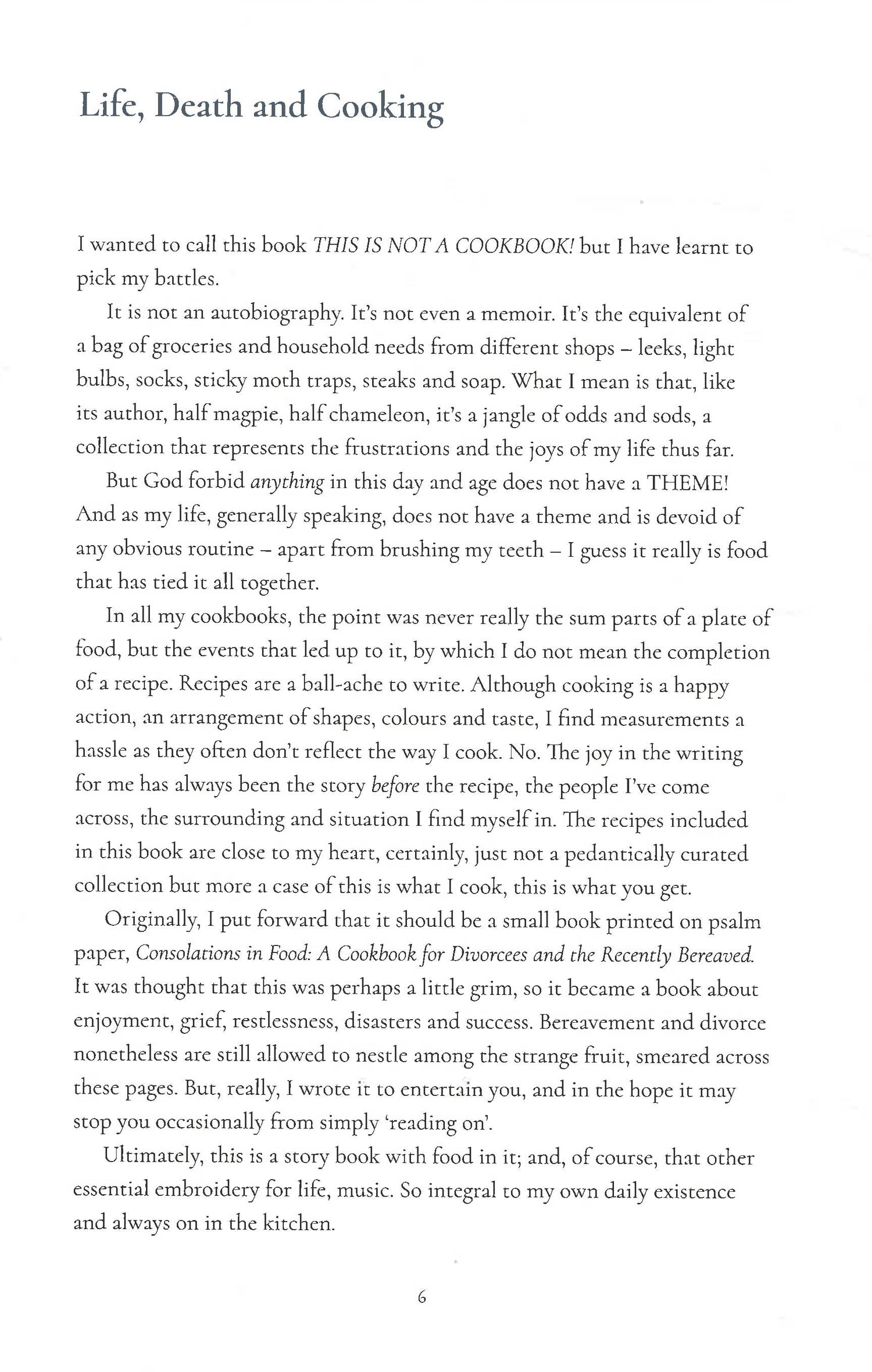 From the aching simplicity of toast with butter to the isolation of cooking for one and the pleasure of returning to heart-warming wholesome slow-roasts, one-pot suppers and more - this book is about enjoyment, grief, restlessness, disasters and success.