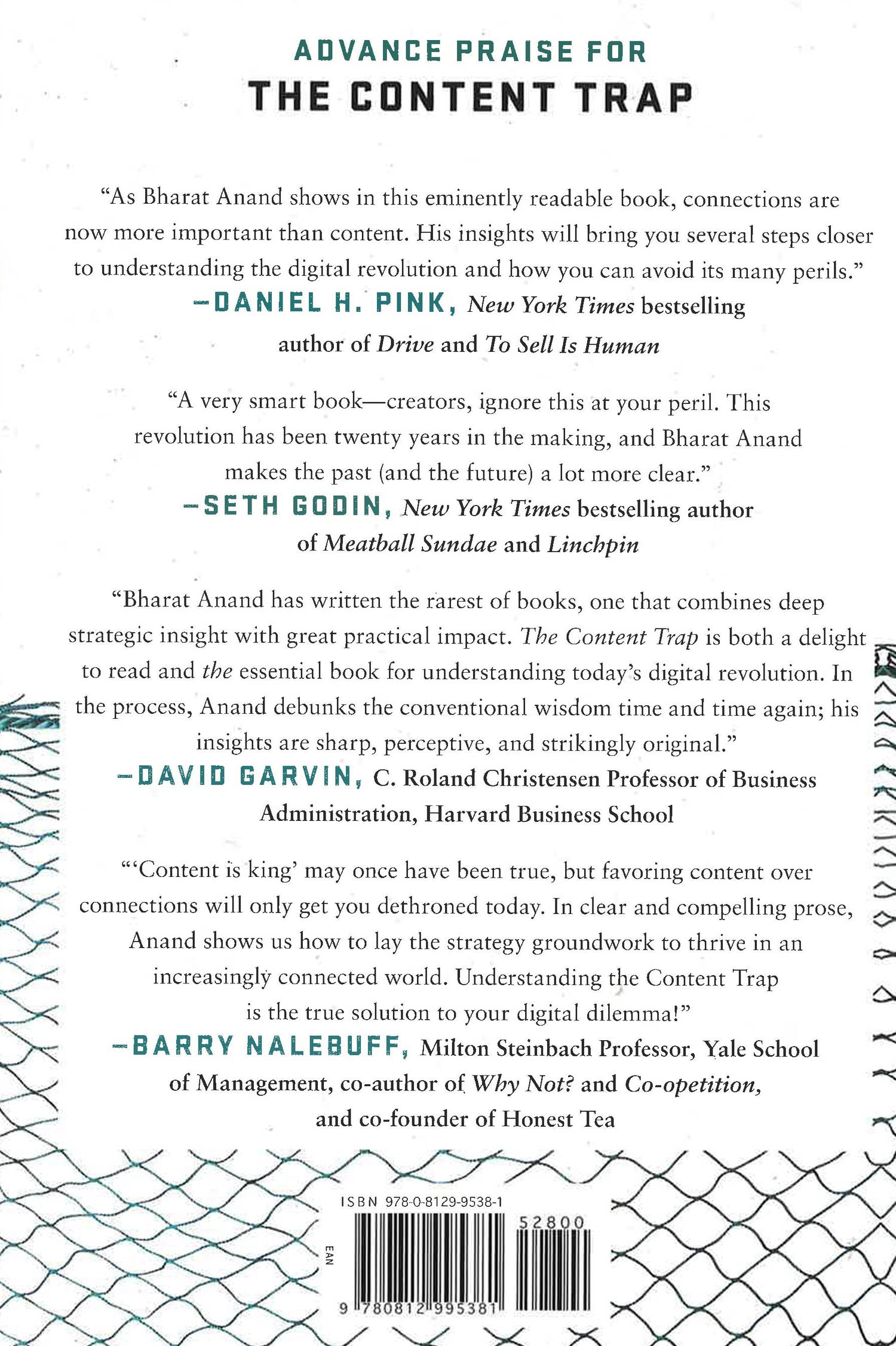 "My favorite book of the year."--Doug McMillon, CEO, Wal-Mart Stores Harvard Business School Professor of Strategy Bharat Anand presents an incisive new approach to digital transformation that favors fostering connectivity over focusing exclusively on content. NAMED ONE OF THE BEST BOOKS OF THE YEAR BY BLOOMBERG Companies everywhere face two major challenges today: getting noticed and getting paid. To confront these obstacles, Bharat Anand examines a range of businesses around the world, from The New York Times to The Economist, from Chinese Internet giant Tencent to Scandinavian digital trailblazer Schibsted, and from talent management to the future of education. Drawing on these stories and on the latest research in economics, strategy, and marketing, this refreshingly engaging book reveals important lessons, smashes celebrated myths, and reorients strategy. Success for flourishing companies comes not from making the best content but from recognizing how content enables customers' connectivity; it comes not from protecting the value of content at all costs but from unearthing related opportunities close by; and it comes not from mimicking competitors' best practices but from seeing choices as part of a connected whole. Digital change means that everyone today can reach and interact with others directly: We are all in the content business. But that comes with risks that Bharat Anand teaches us how to recognize and navigate. Filled with conversations with key players and in-depth dispatches from the front lines of digital change, The Content Trap is an essential new playbook for navigating the turbulent waters in which we find ourselves.