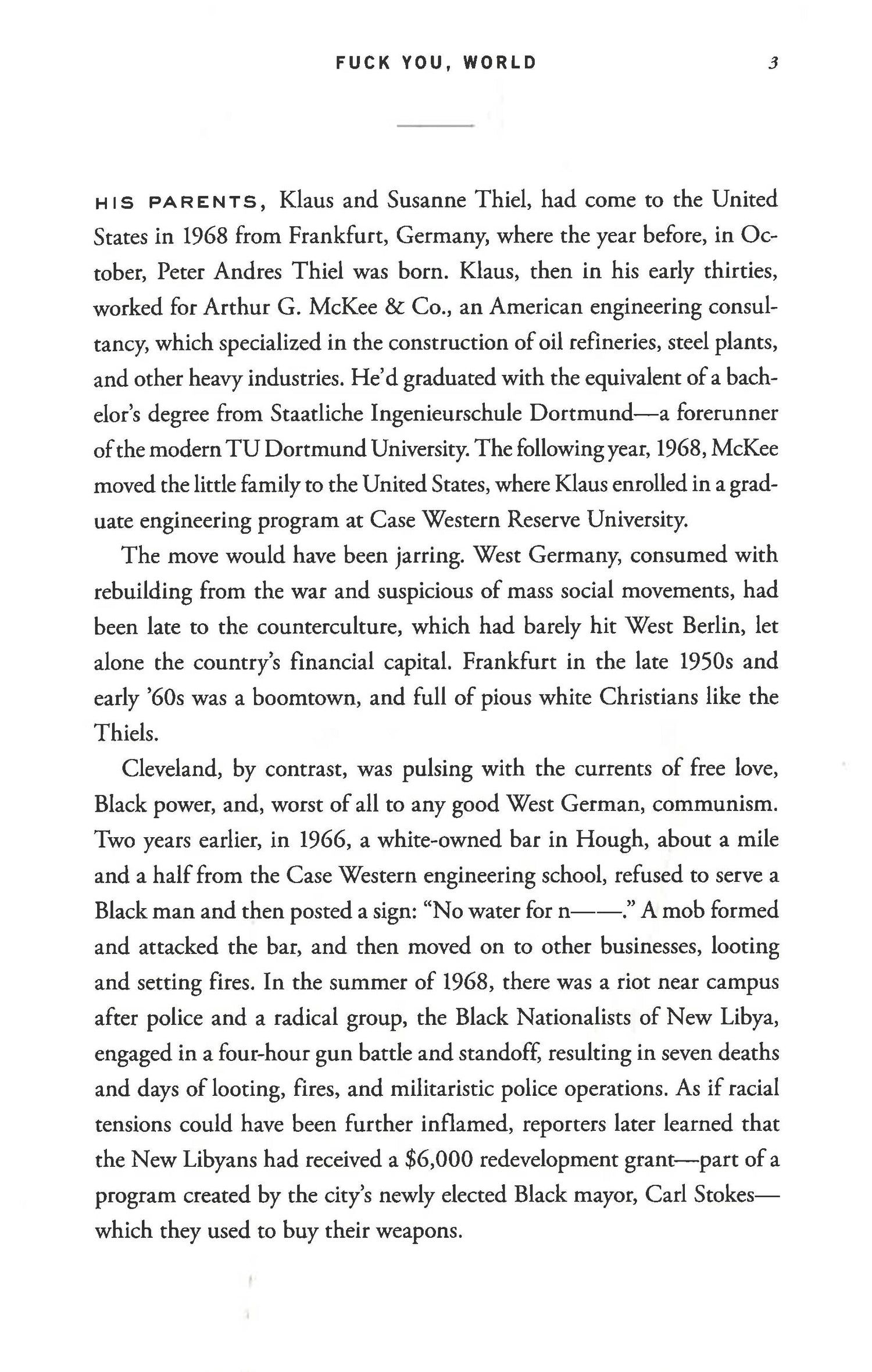 A New York Times Notable Book A biography of venture capitalist and entrepreneur Peter Thiel, the enigmatic, controversial, and hugely influential power broker who sits at the dynamic intersection of tech, business, and politicsSince the days of the dot-com bubble in the late 1990s, no industry has made a greater impact on the world than Silicon Valley. And few individuals have done more to shape Silicon Valley than Peter Thiel. The billionaire venture capitalist and entrepreneur has been a behind-the-scenes operator influencing countless aspects of our contemporary way of life, from the technologies we use every day to the delicate power balance between Silicon Valley, Wall Street, and Washington. But despite his power and the ubiquity of his projects, no public figure is quite so mysterious.In the first major biography of Thiel, Max Chafkin traces the trajectory of the innovator's singular life and worldview, from his upbringing as the child of immigrant parents and years at Stanford as a burgeoning conservative thought leader to his founding of PayPal and Palantir, early investment in Facebook and SpaceX, and relationships with fellow tech titans Mark Zuckerberg, Elon Musk, and Eric Schmidt. The Contrarian illuminates the extent to which Thiel has sought to export his values to the corridors of power beyond Silicon Valley, including funding the lawsuit that destroyed the blog Gawker and strenuously backing far-right political candidates, notably Donald Trump for president in 2016.Eye-opening and deeply reported, The Contrarian is a revelatory biography of a one-of-a-kind leader and an incisive portrait of a tech industry whose explosive growth and power is both thrilling and fraught with controversy.