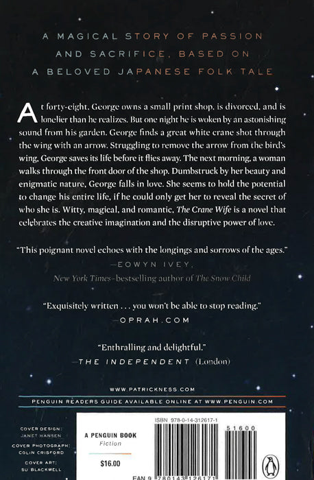 A magical novel, based on a Japanese folk tale, that imagines how the life of a broken-hearted man is transformed when he rescues an injured white crane that has landed in his backyard.