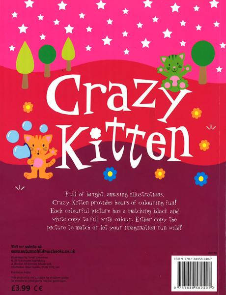 Full of bright, amusing illustrations, Crazy Kitten provides hours of colouring fun! Each colourful pictures has a matching black and white copy to fill with colour. Either copy the picture to match or let your imagination run wild.