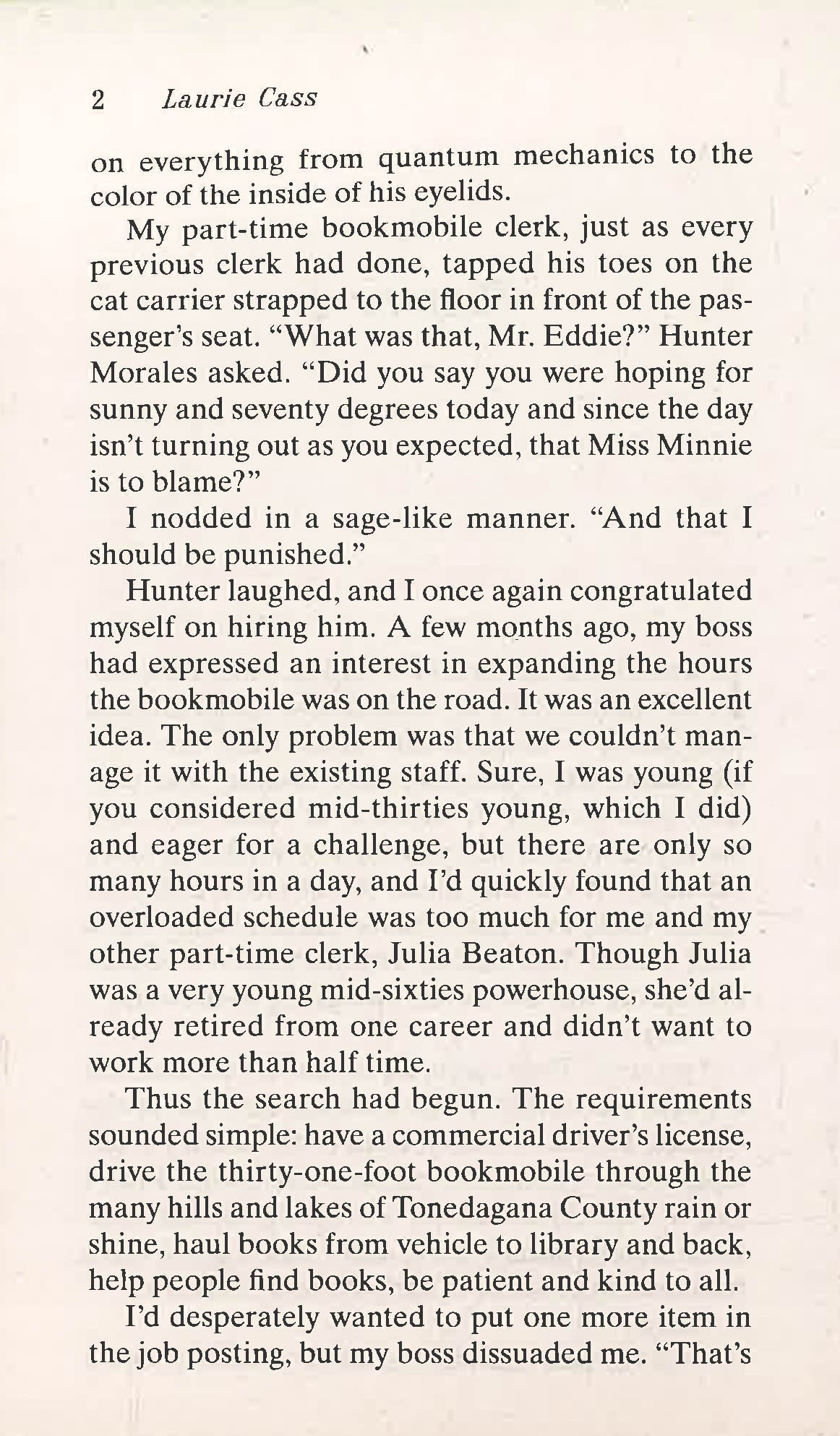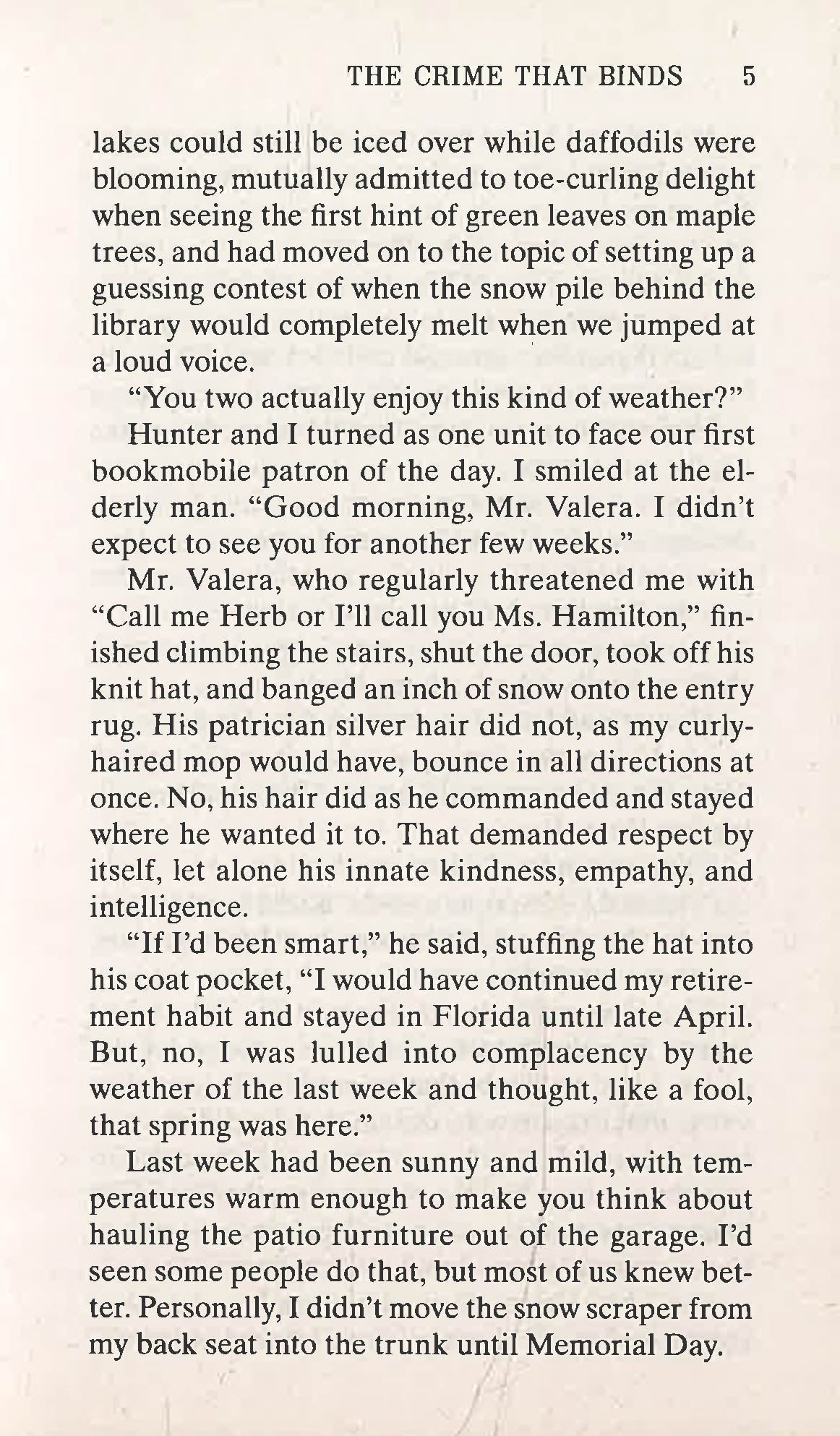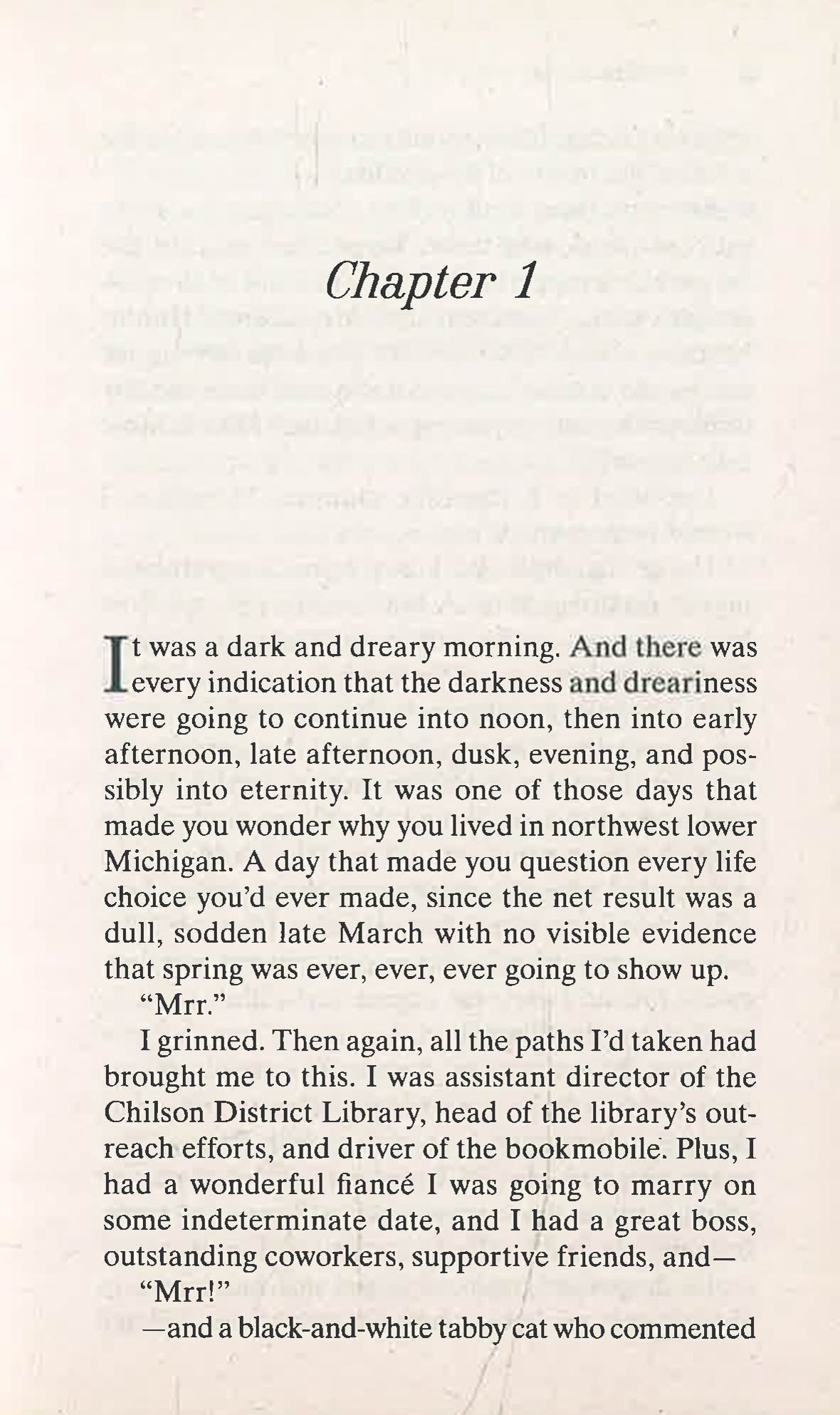 Late March is prime reading weather in the small northern Michigan town of Chilson. Though snowfall and cloudy skies deter outdoor activities, life inside the bookmobile is warm and cheerful. But as Minnie and Eddie are making the rounds to deliver comforting reads, they see something strange: loyal bookmobile patron Ryan Anderson making a sudden u-turn and speeding away. When Minnie discovers the police want to question Ryan about a bank robbery and the death of a security guard, she realizes she’s one of the only people who thinks Ryan isn’t morally bankrupt.