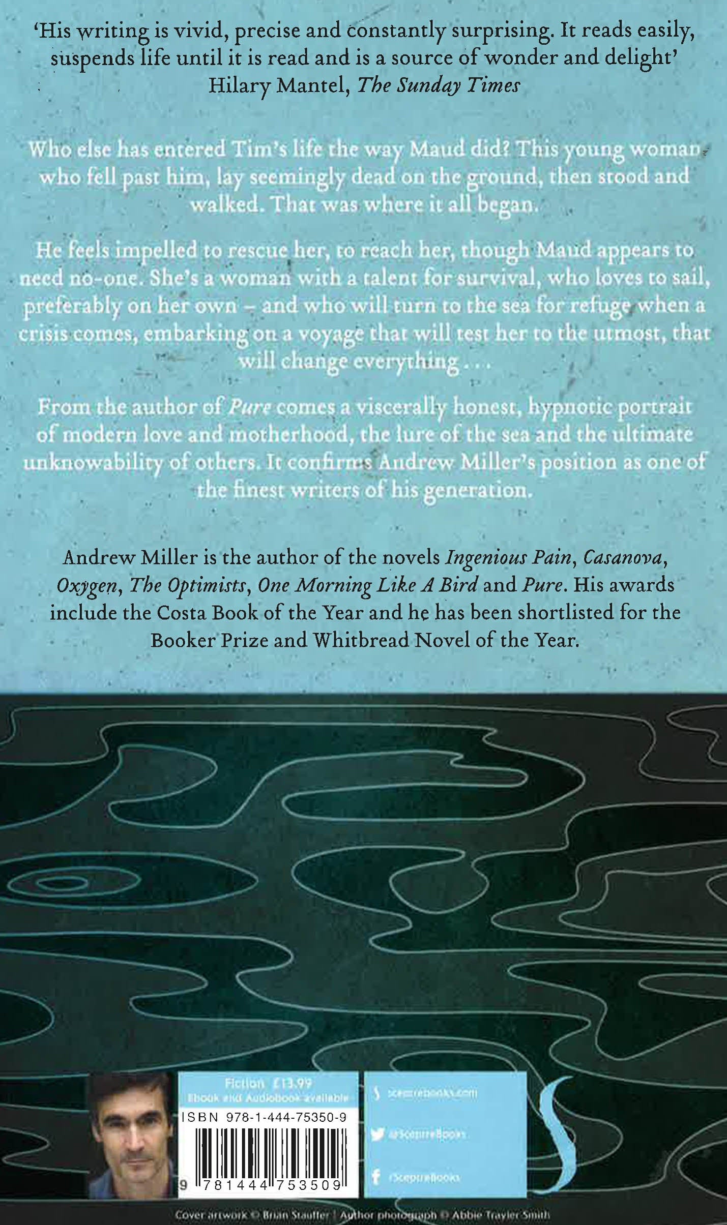 She is sailing. She is alone. Ahead of her is the world's curve and beyond that, everything else. The known, the imagined, the imagined known.Who else has entered Tim's life the way Maud did? This girl who fell past him, lay seemingly dead on the ground, then stood and walked. That was where it all began.He wants her - wants to rescue her, to reach her. Yet there is nothing to suggest Maud has any need of him, that she is not already complete. A woman with a talent for survival, who works long hours and loves to sail - preferably on her own. A woman who, when a crisis comes, will turn to the sea for refuge, embarking on a voyage that will test her to the utmost, that will change everything . . .From the Costa Award-winning author of Pure comes a viscerally honest, hypnotic portrait of modern love and motherhood, the lure of the sea and the ultimate unknowability of others. This pitch-perfect novel confirms Andrew Miller's position as one of the finest writers of his generation.