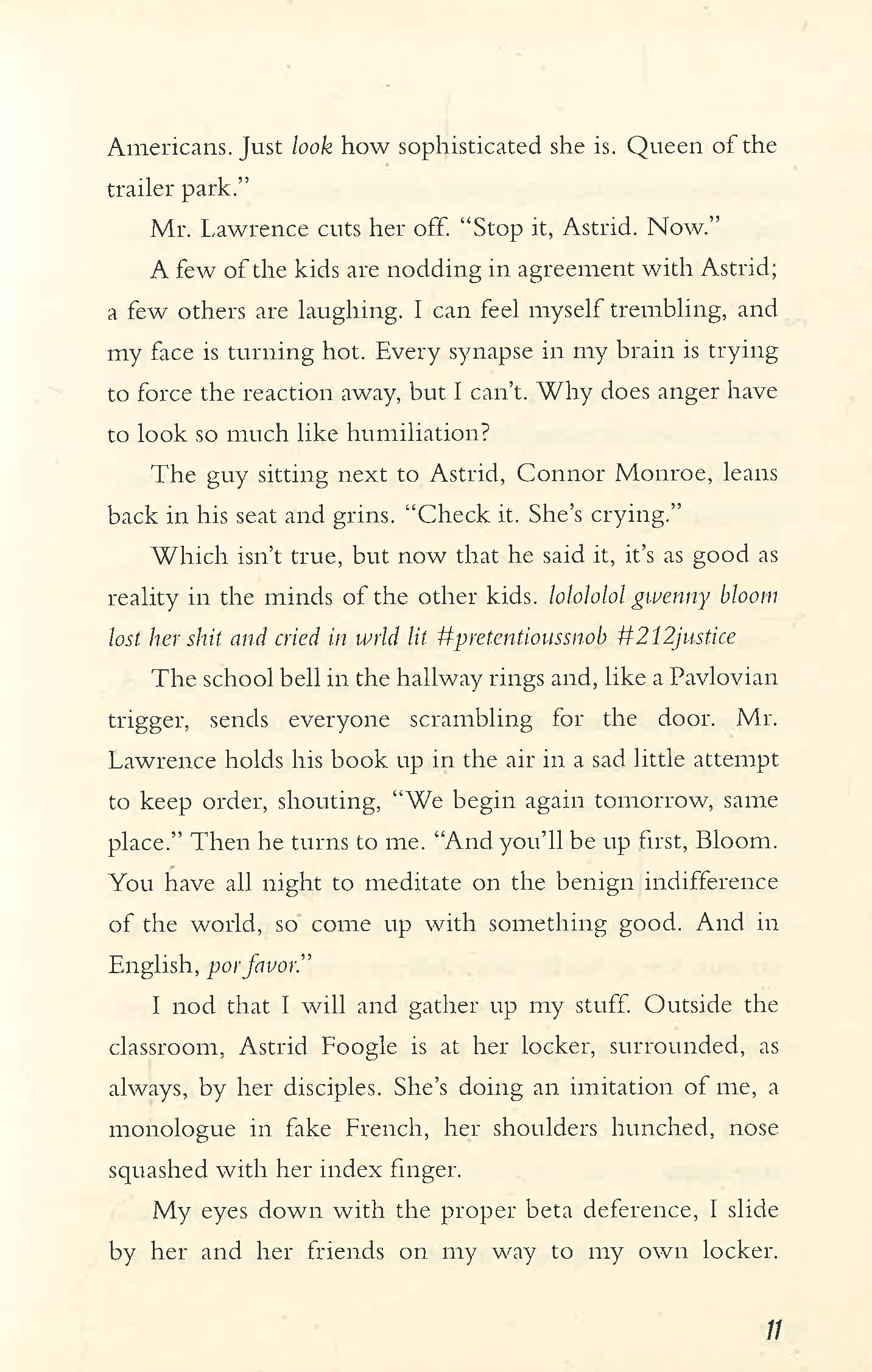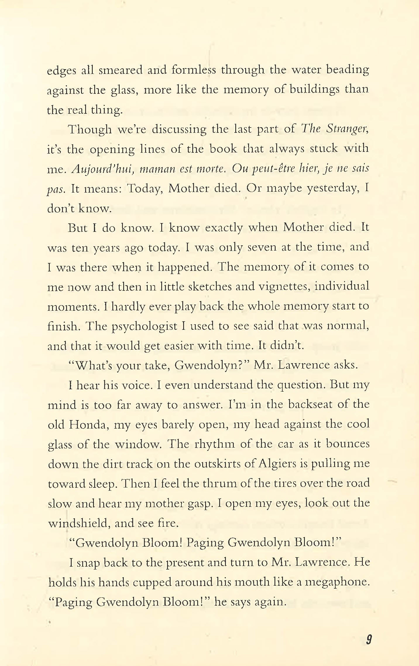 When Gwendolyn Bloom realizes that her father has been kidnapped, she has to take matters into her own hands. She traces him from New York City across the dark underbelly of Europe, taking on a new identity to survive in a world of brutal criminal masterminds. As she slowly leaves behind her schoolgirl self, she realizes that she must learn the terrifying truth about herself. To overcome the cruelty she encounters, she must also embrace it.