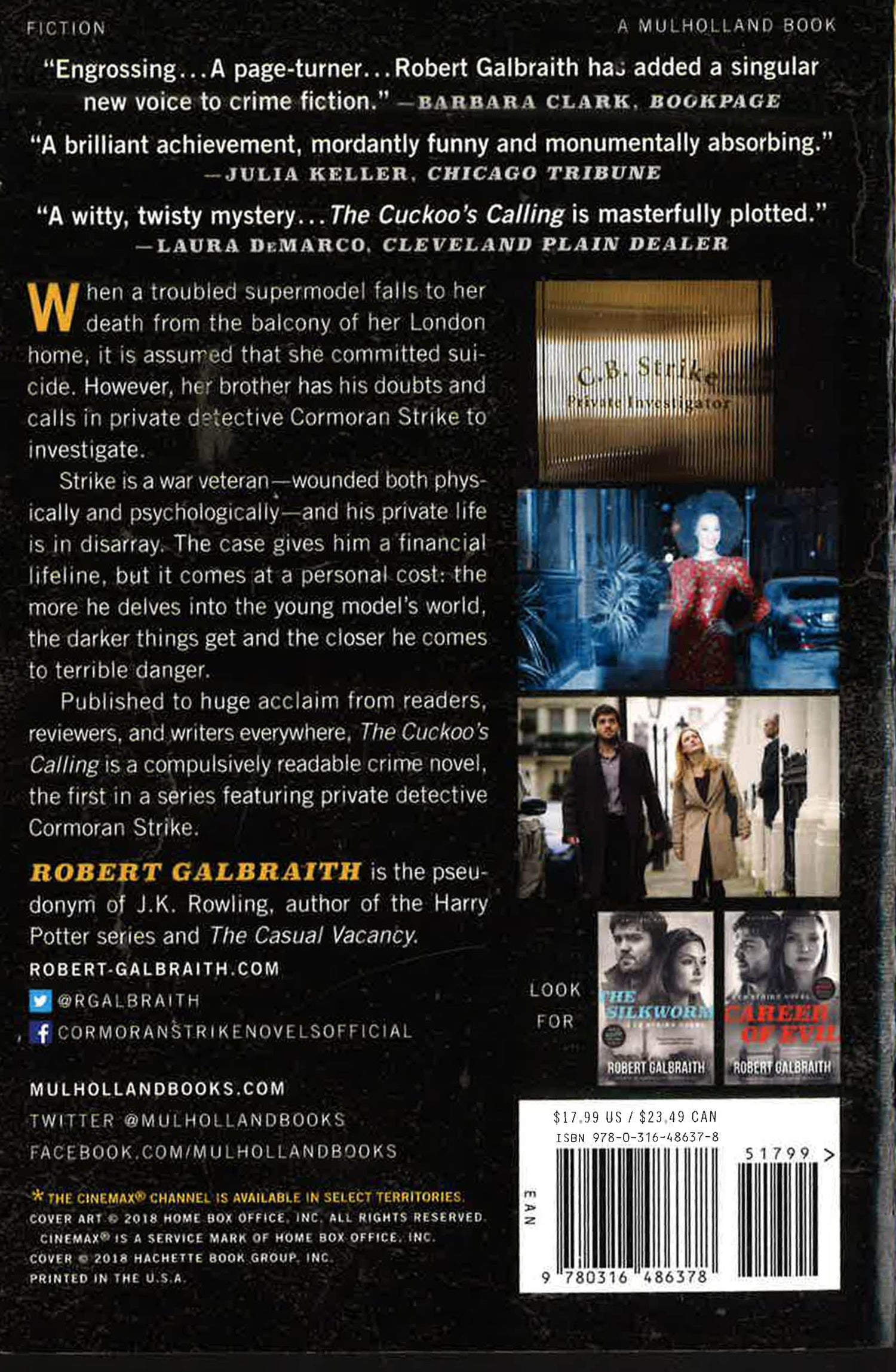 Then John Bristow walks through his door with a shocking story: His sister, the legendary supermodel Lula Landry -- known to her friends as the Cuckoo -- famously fell to her death a few months earlier. The police ruled it a suicide, but John refuses to believe that. The case plunges Strike into the world of multimillionaire beauties, rock-star boyfriends, and desperate designers, and it introduces him to every variety of pleasure, enticement, seduction, and delusion known to man.