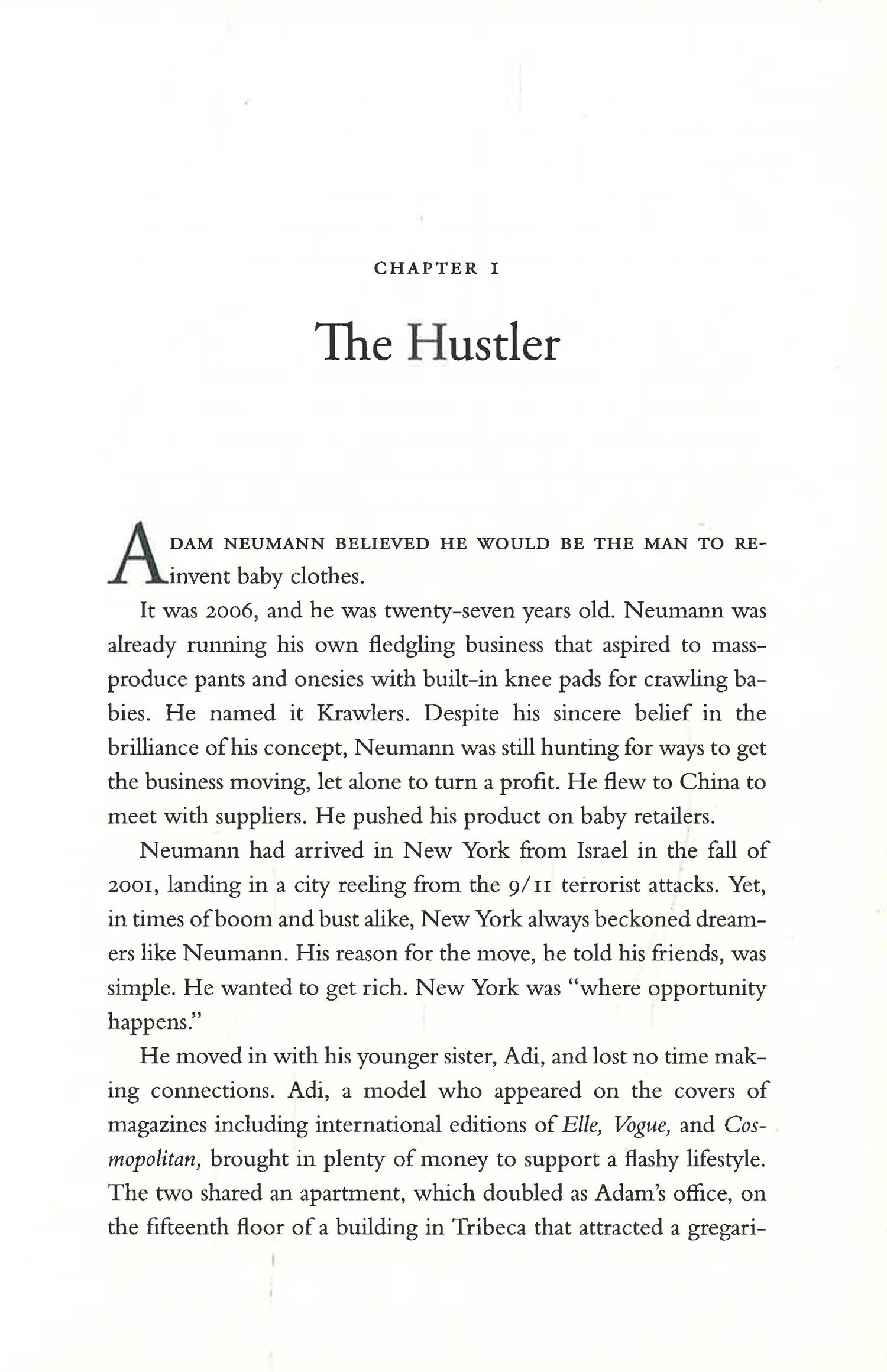 In 2001, Adam Neumann arrived in New York after five years as a conscript in the Israeli navy. Just over fifteen years later, he had transformed himself into the charismatic CEO of a company worth $47 billion. With his long hair and feel-good mantras, the six-foot-five Neumann looked the part of a messianic Silicon Valley entrepreneur. The vision he offered was mesmerizing: a radical reimagining of work space for a new generation. He called it WeWork.