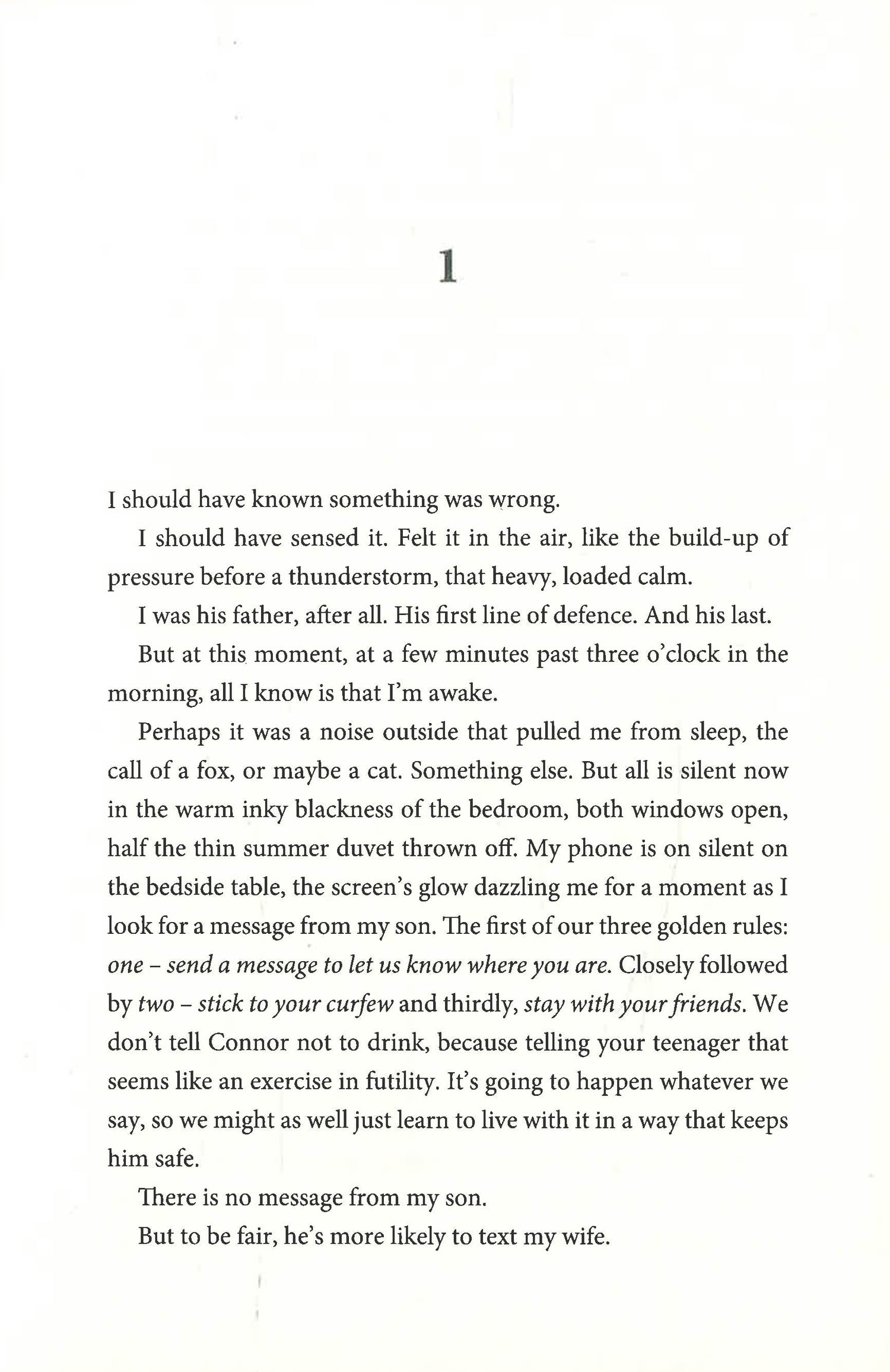 I should have known something was wrong. I should have sensed it. Felt it in the air, like the build-up of pressure before a thunderstorm, that heavy, loaded calm.