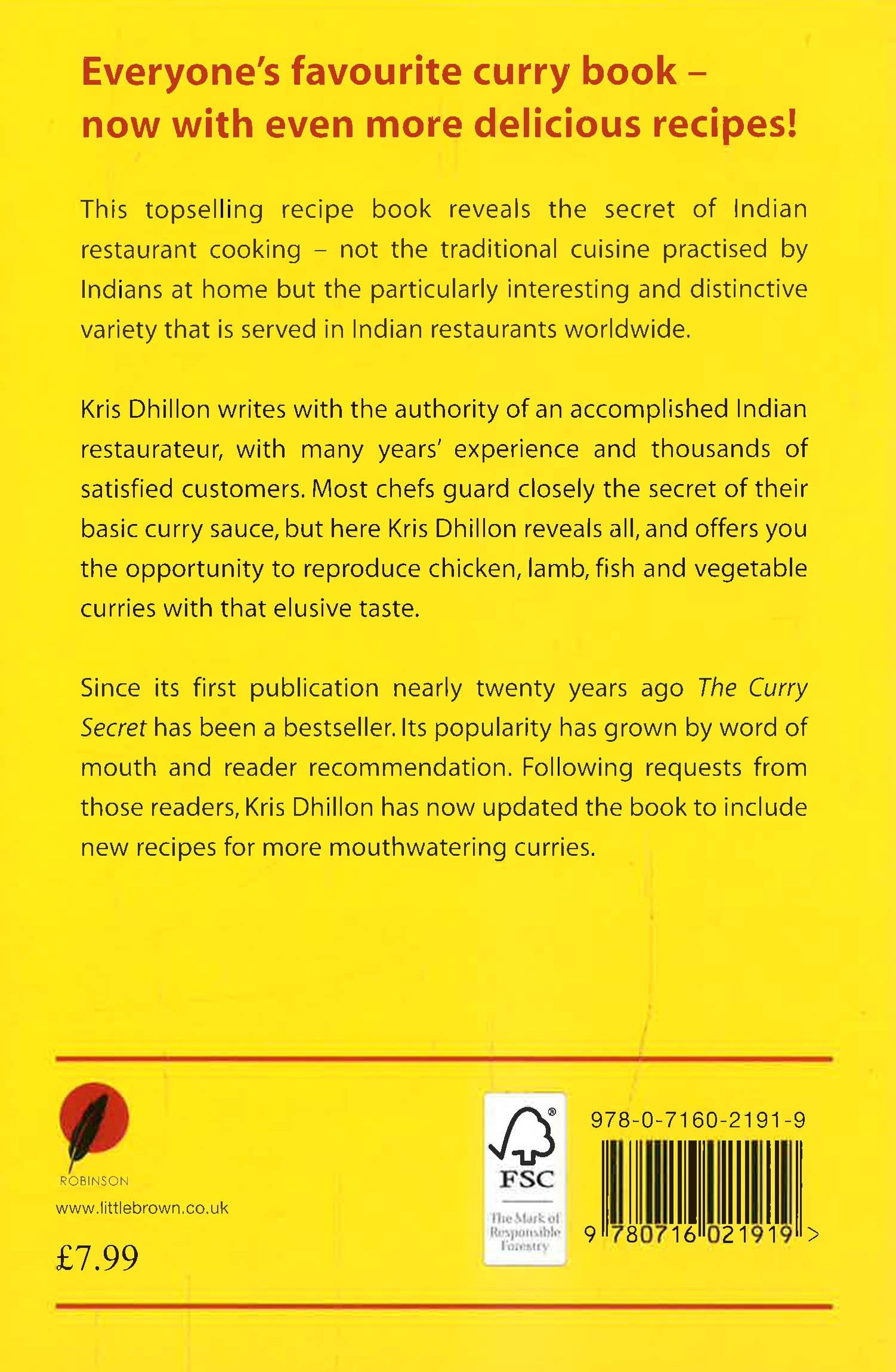There is truly no other curry book like this one. The recipes are not the traditional cuisine practised by Indians at home but the distinctive and well-loved variety served in Indian restaurants worldwide. Since its first publication nearly twenty years ago The Curry Secret has been a bestseller. It has grown, by word of mouth and reader recommendation, into a cult classic - it has even spawned internet forums where readers rave about the sauce. Following requests from those readers, Kris Dhillon has now updated the book to include a wider choice of dishes and brand new recipes for even more mouthwatering curries as well as all the established favourites. From Chicken Tikka Masala to Onion Bhajee, Aloo Gobi to Lamb Biryani, everyone's favourite is here. Praise from readers: 'Truly an excellent book and one that any Indian restaurant fan who enjoys cooking should have' 'The Holy Grail of curry cook books' 'This book is so good it's unbelievable'