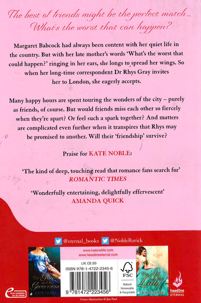 Margaret Babcock had always been content with her quiet life in the country. But with her late mother's words 'What's the worst that could happen?' ringing in her ears, she longs to spread her wings. So when her long-time correspondent Dr Rhys Gray invites her to London, she eagerly accepts.