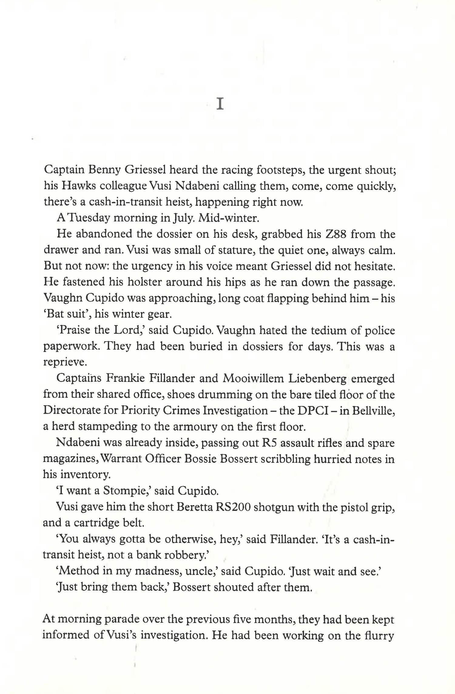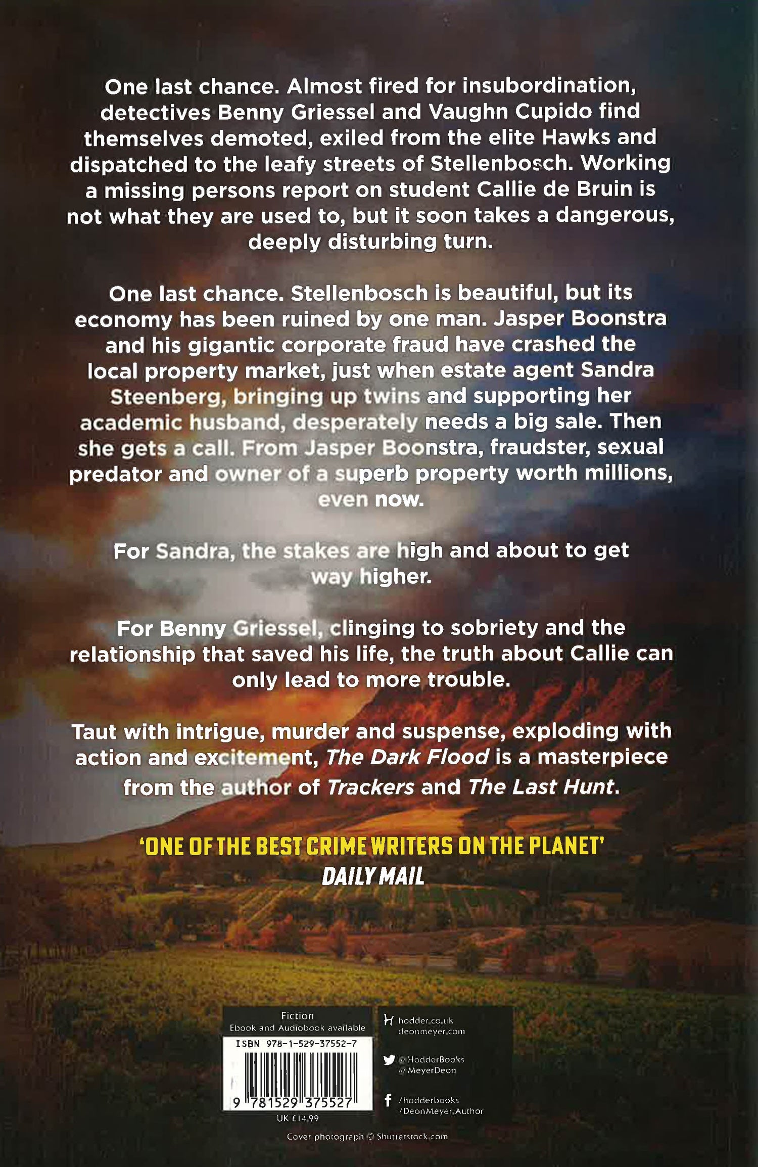 One last chance. Almost fired for insubordination, detectives Benny Griessel and Vaughn Cupido find themselves demoted, exiled from the elite Hawks unit and dispatched to the leafy streets of Stellenbosch. Working a missing persons report on student Callie de Bruin is not the level of work they are used to, but it's all they get. And soon, it takes a dangerous, deeply disturbing turn.