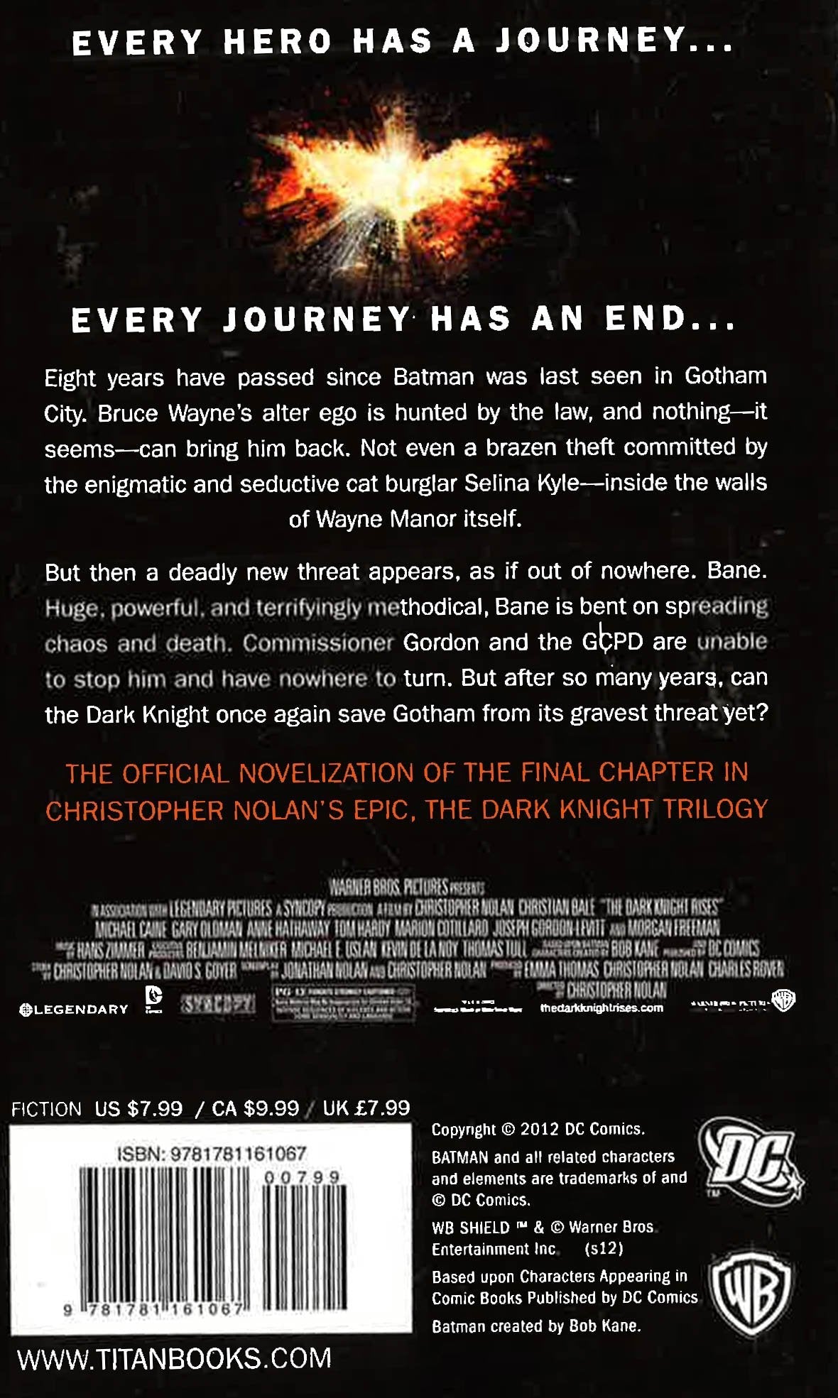 Christian Bale, Michael Caine, Gary Oldman and Morgan Freeman return in the thrilling and hotly anticipated conclusion to Christopher Nolan's Dark Knight Trilogy. From the team that brought you Inception, The Dark Knight Rises is guaranteed to be the blockbuster hit of 2012. This enthralling official novelization will transport fans into a Gotham City once again under threat. Christian Bale, Michael Caine, Gary Oldman and Morgan Freeman return in the thrilling and hotly anticipated conclusion to Christopher Nolan's Dark Knight Trilogy. From the team that brought you Inception, The Dark Knight Rises is guaranteed to be the blockbuster hit of 2012. This enthralling official novelization will transport fans into a Gotham City once again under threat.