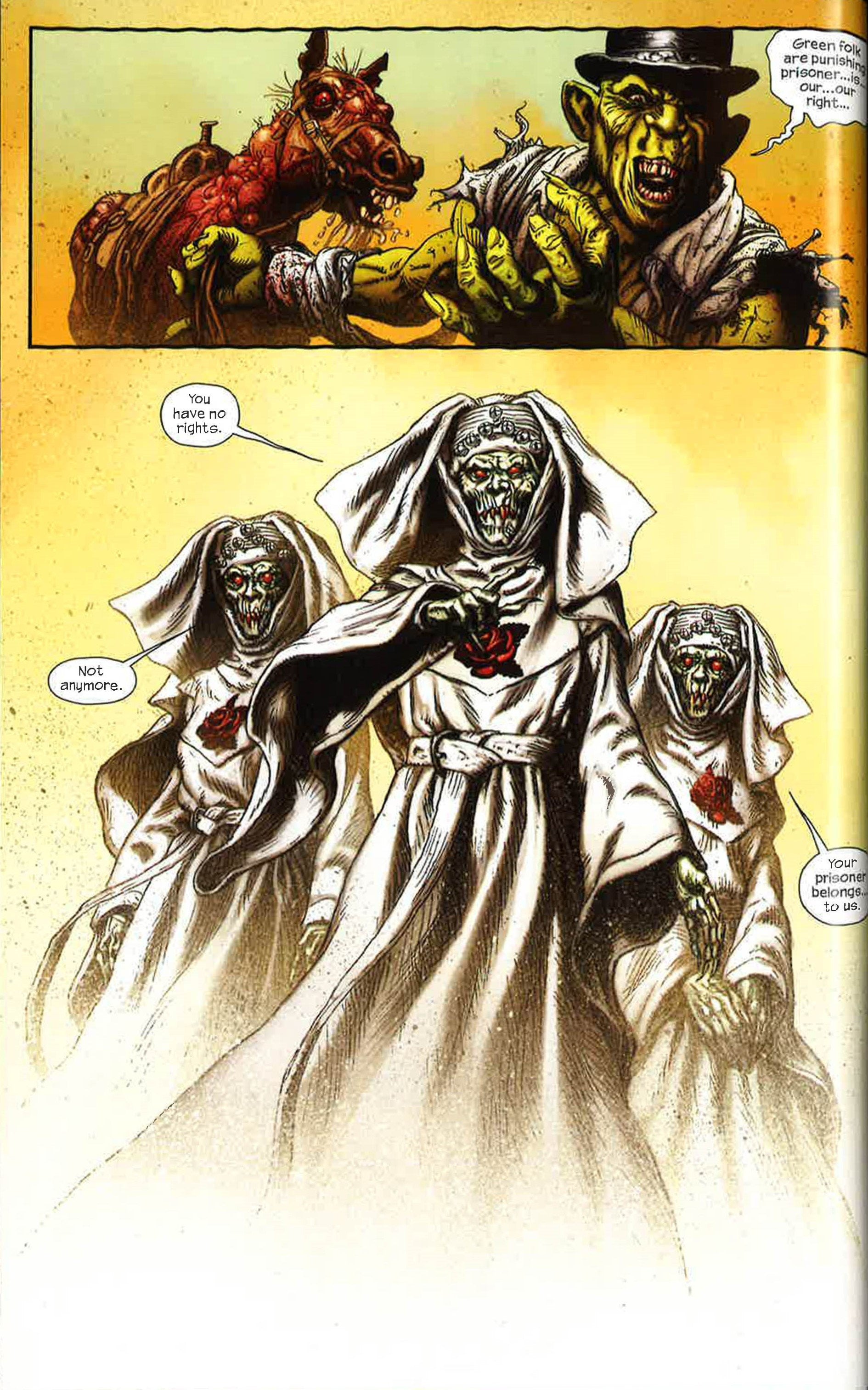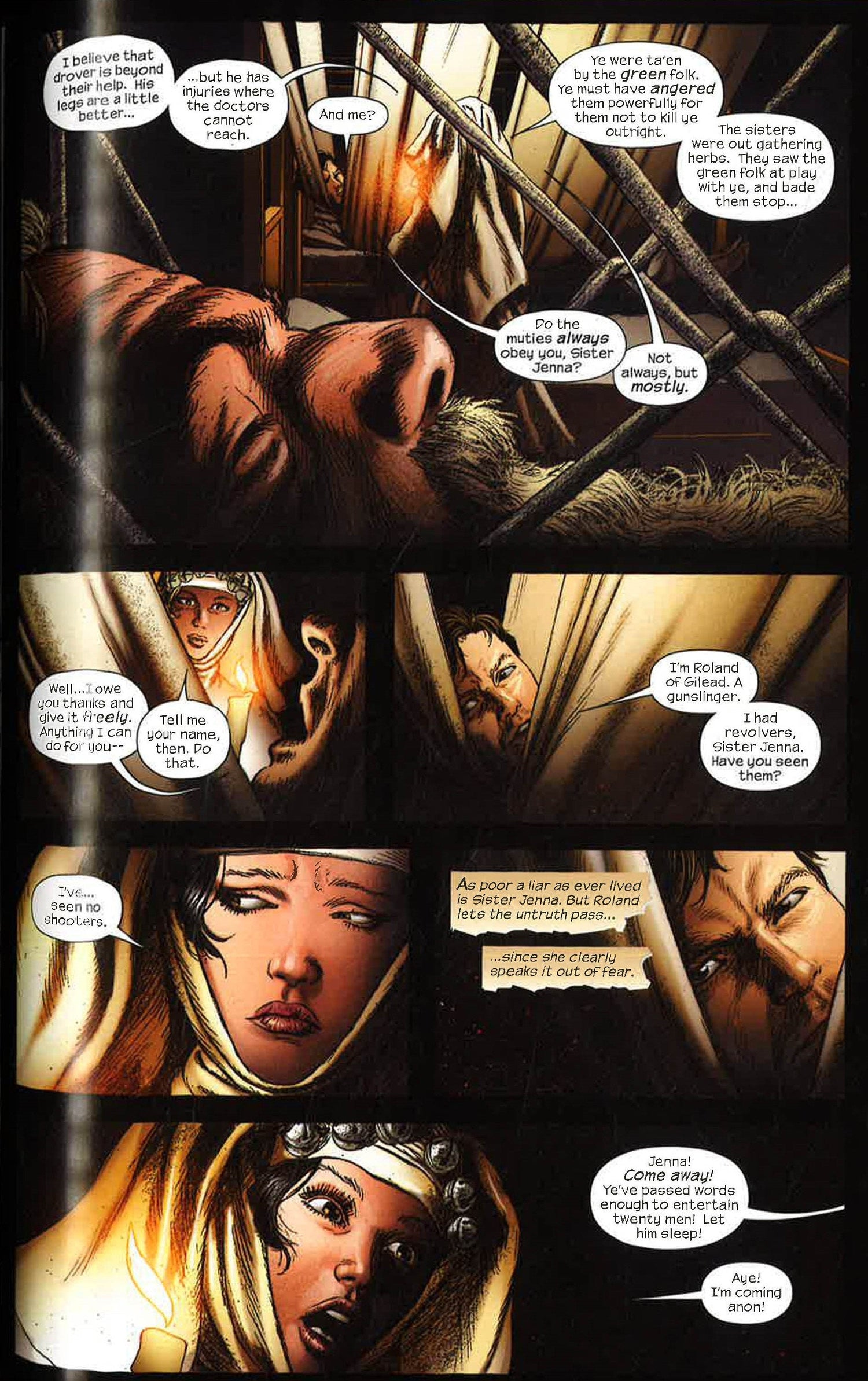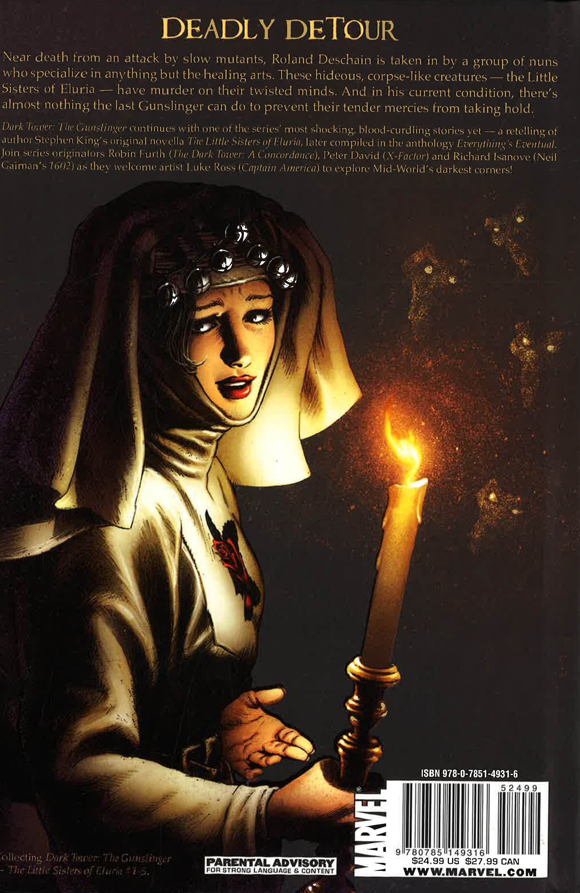 Near death from an attack by Slow Mutants, Roland Deschain is taken in by a group of Sisters who specialize in anything but the healing arts. These hideous, corpse-like creatures known as the Little Sisters of Eluria have murder on their twisted minds. And in his current, wounded condition, there's almost nothing the last gunslinger can do to prevent their tender mercies from taking hold. It's the beginning of a new Dark Tower story arc featuring the fine pencils of Luke Ross, whose work on this story will astound you!