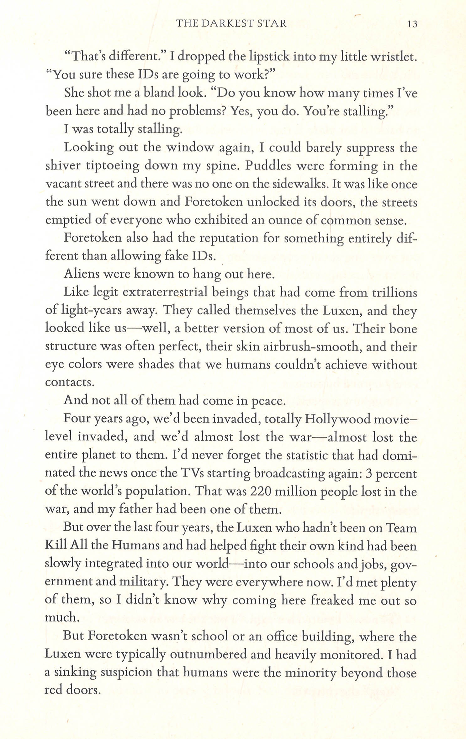 #1 New York Times, USA Today, and internationally bestselling author Jennifer L. Armentrout brings her trademark drama and intrigue to a new romantic YA science fiction series with The Darkest Star. Set in the beloved world of the Lux, a girl pulled into in a world she doesn't understand finds herself confronted by long buried secrets, a betrayal that could tear her life apart...and Armentrout's most swoonworthy book boyfriend yet. Seventeen-year-old Evie Dasher knows firsthand the devastating consequences of humanity's war with the aliens. When she's caught up in a raid at a notorious club known as one of the few places where humans and the surviving Luxen can mingle freely, she meets Luc, an unnaturally beautiful guy she initially assumes is a Luxen...but he is in fact something much more powerful. Her growing attraction for Luc will lead her deeper and deeper into a world she'd only heard about, a world where everything she thought she knew will be turned on its head... Welcome to the Origin series.