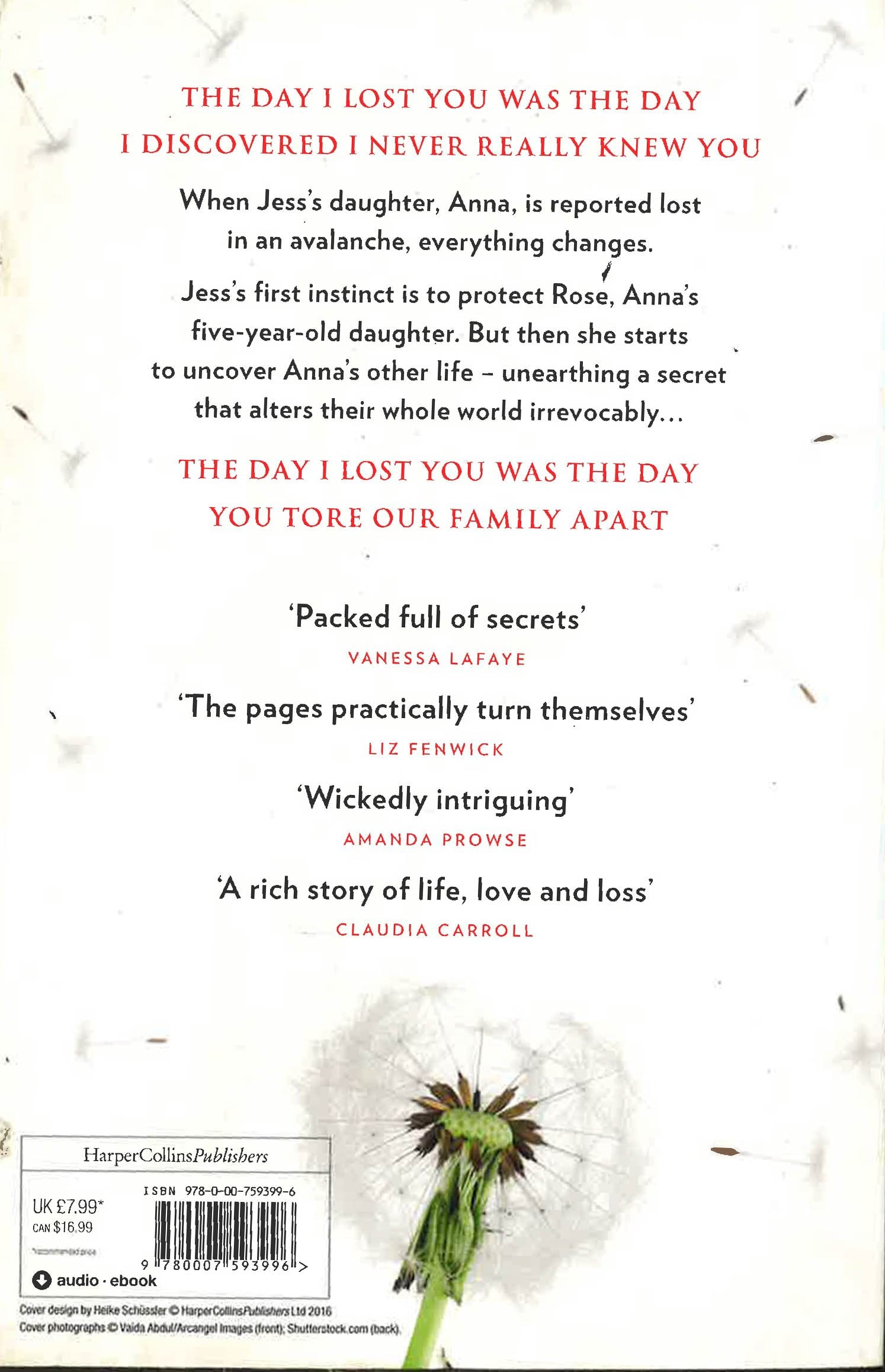 When Jess's daughter, Anna, is reported lost in an avalanche, everything changes.Jess's first instinct is to protect Rose, Anna's five-year-old daughter. But then she starts to uncover Anna's other life - unearthing a secret that alters their whole world irrevocably . . .
