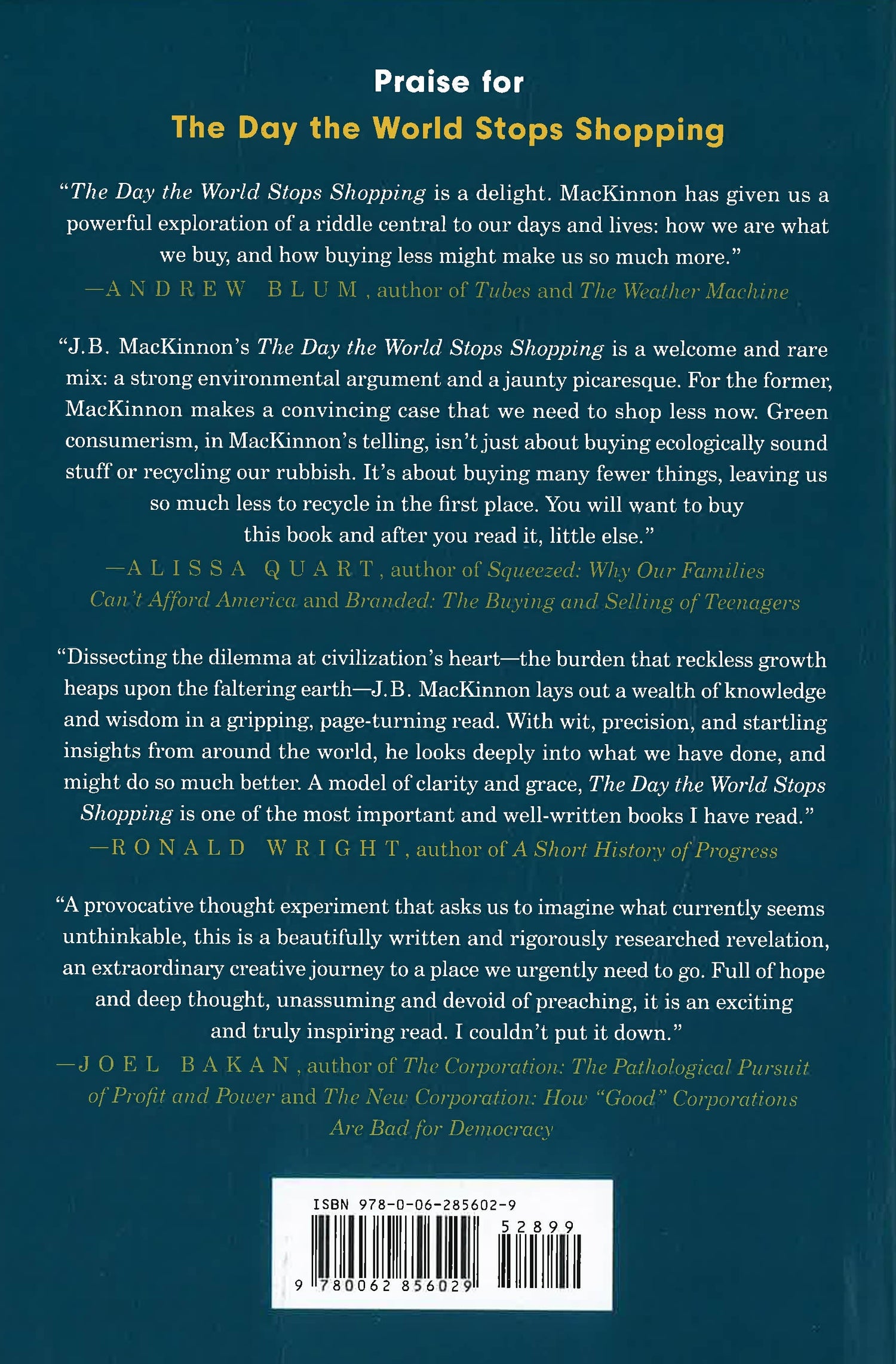 Drawing from experts in fields ranging from climate change to economics, MacKinnon investigates how living with less would change our planet, our society, and ourselves. Along the way, he reveals just how much we stand to gain: An investment in our physical and emotional wellness. The pleasure of caring for our possessions. Closer relationships with our natural world and one another. Imaginative and inspiring, The Day the World Stops Shopping will embolden you to envision another way.