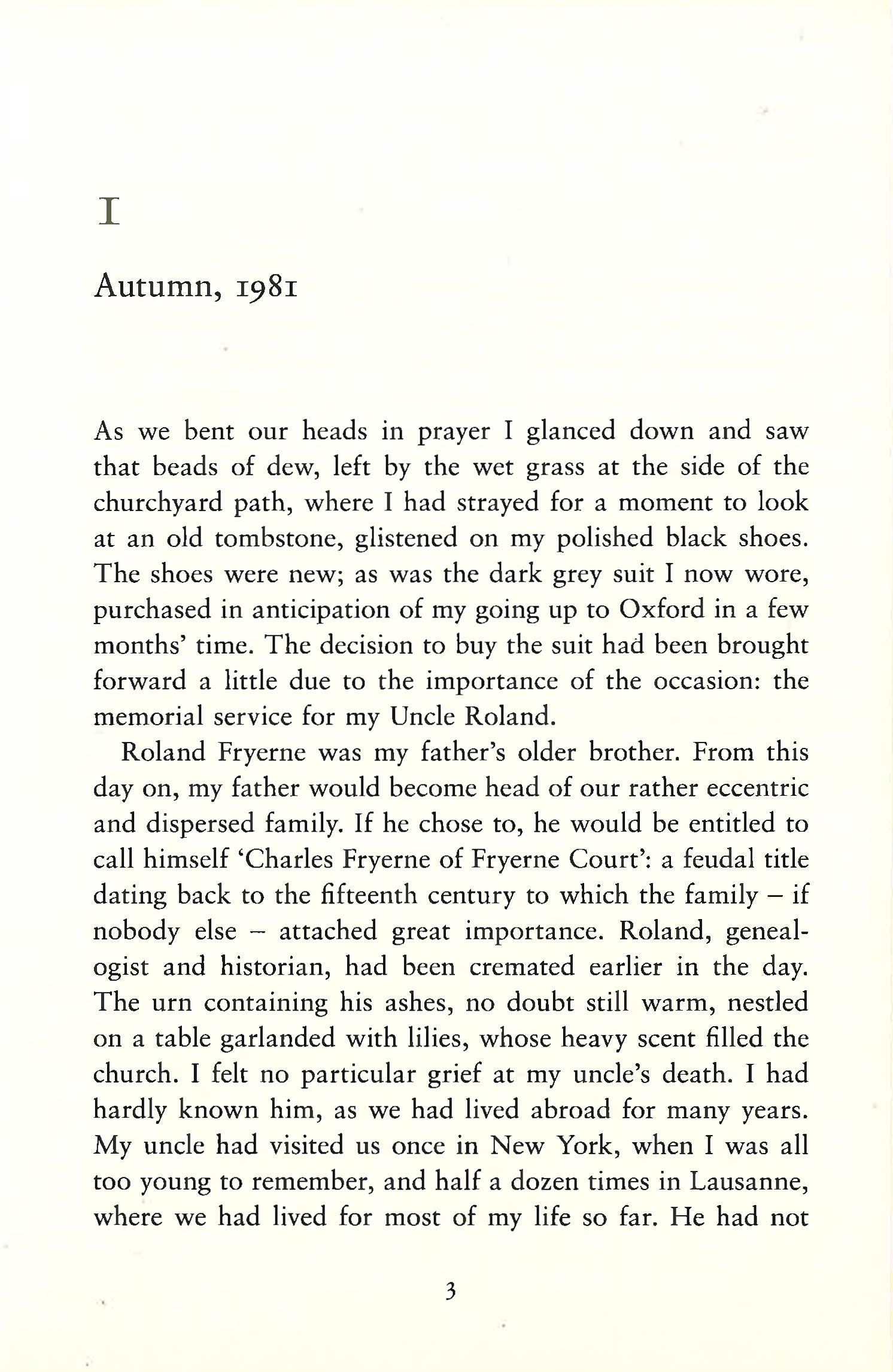 Andrew Landford, MP is driving home one night along a dark country lane when a barn owl flies into his windscreen. It is an accident, nothing more. But Andrew sits on a parliamentary committee concerned with the protection of endangered species, and the death of the owl threatens to destroy his hopes of reaching No. 10.Also in the car is Andrew's old Oxford friend and political adviser, Charles Fryerne. Will they be able to keep the crime under wraps, or will circumstances conspire against them?