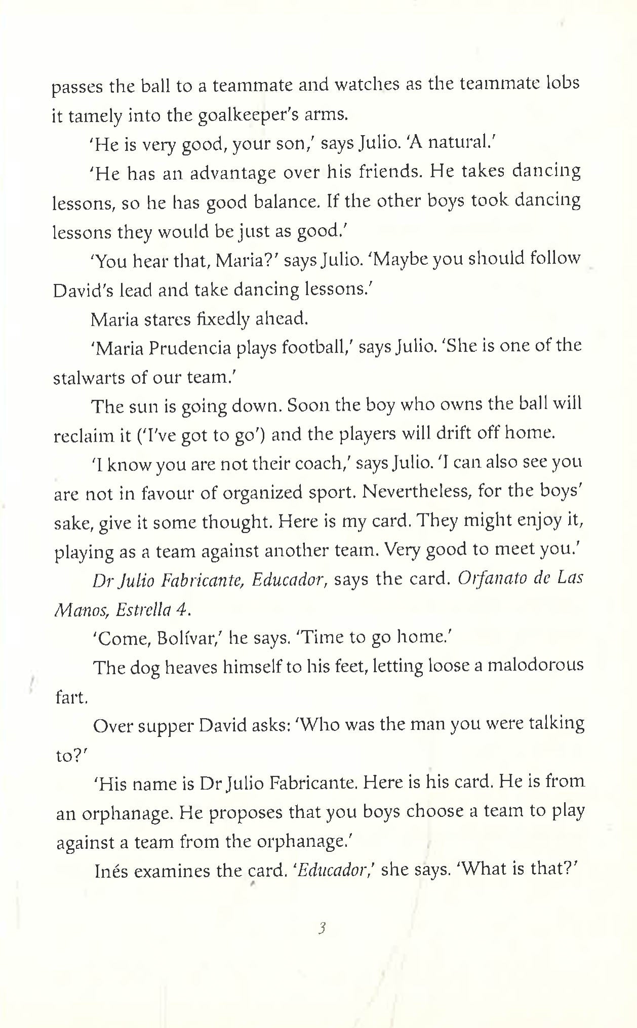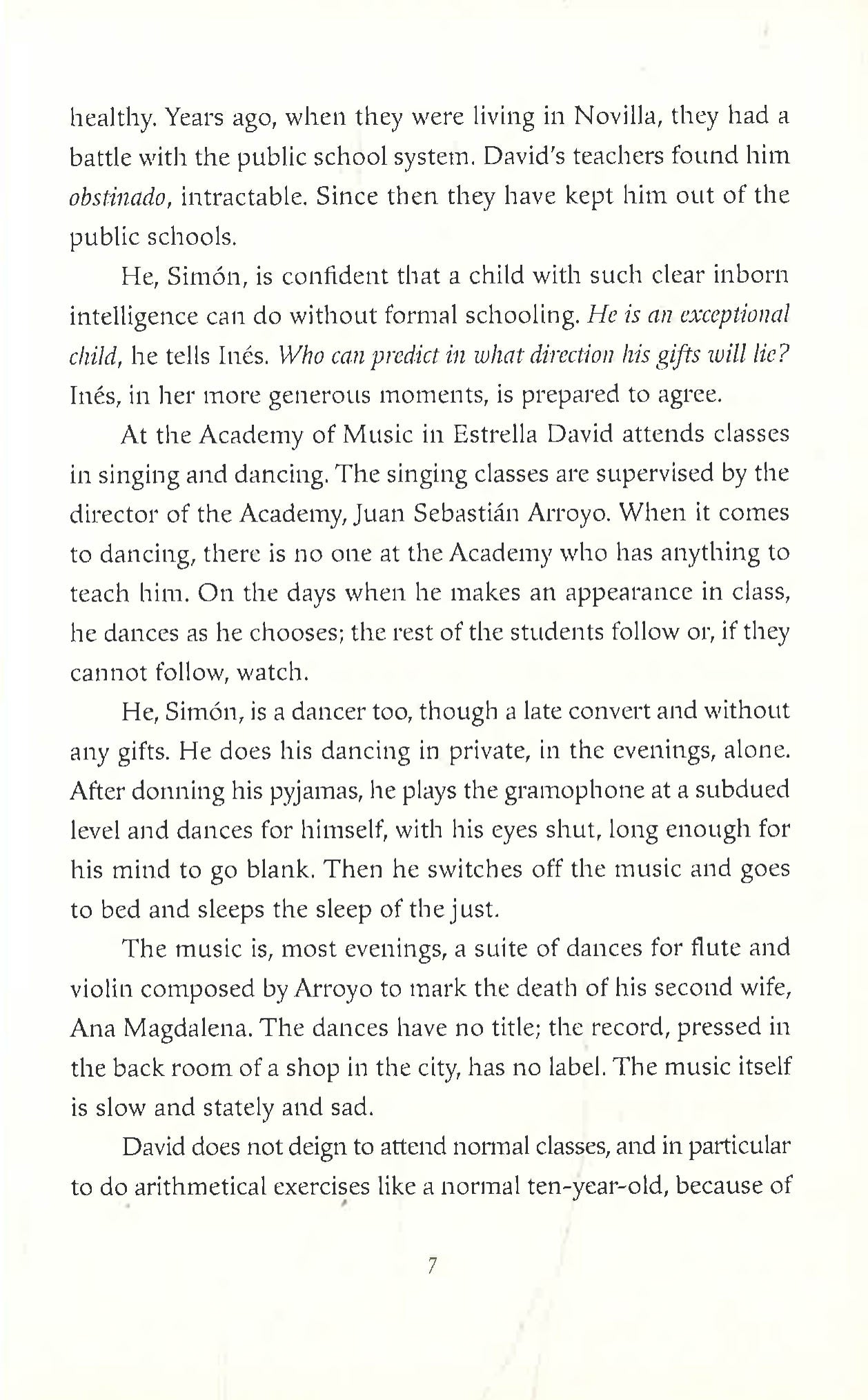 In The Childhood of Jesus, Simòn found a boy, David, and they began life in a new land, together with a woman named Inès. In The Schooldays of Jesus, the small family searched for a home in which David could thrive.