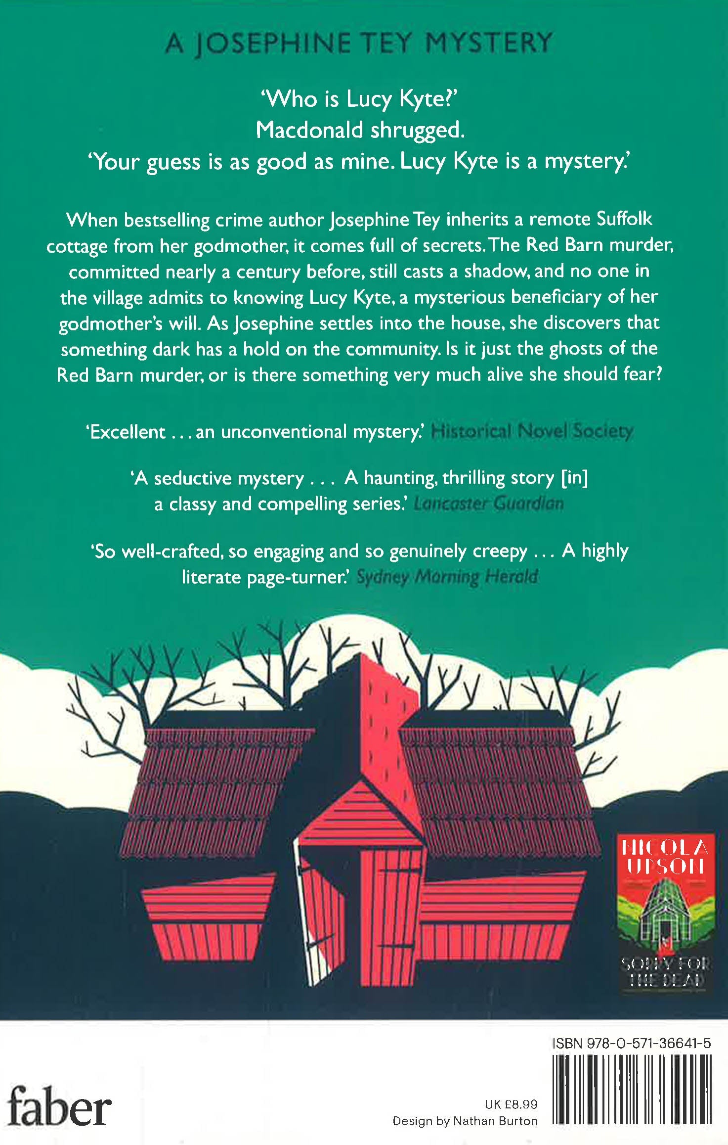 As Josephine settles into the house, she knows that something dark has a tight hold on the heart of this small community. Is it just the ghosts of the Red Barn murder, or is there something very much alive that she needs to fear? Trapped in this isolated community and surrounded by shadows of obsession, abuse and deceit, can Josephine untangle history from present danger and prevent a deadly cycle beginning once again?