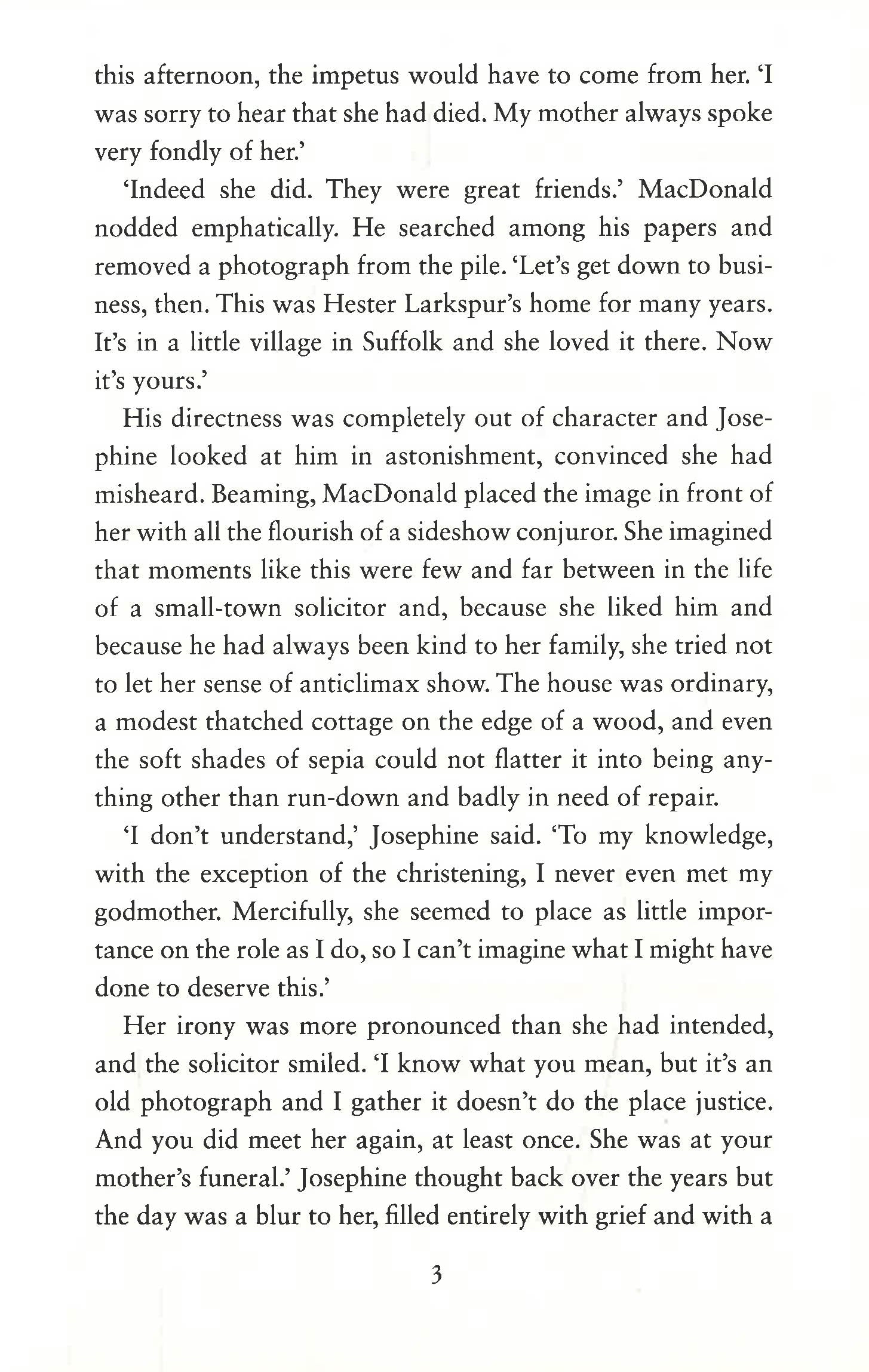 When Josephine inherited a remote Suffolk cottage from her godmother, it came full of secrets. Sorting through the artefacts of her godmother's life, Josephine is intrigued by an infamous murder committed near the cottage a century before. Yet this old crime - dubbed the Red barn murder - still seems to haunt the tight-knit village and its remote inhabitants.
