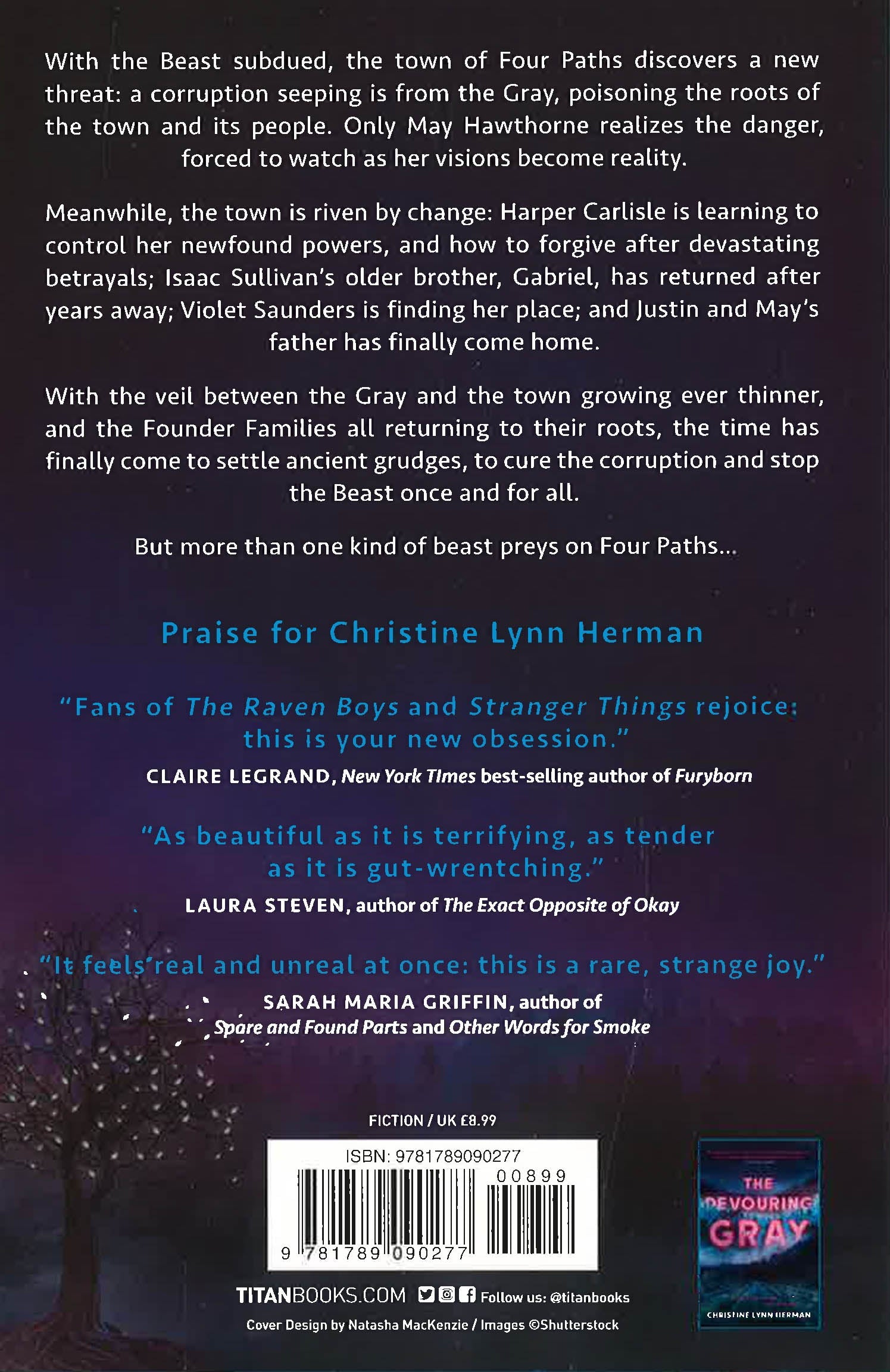 The teenagers of Four Paths must save their home, in the sequel to hit fantasy The Devouring Gray. For fans of Stranger Things, Riverdale and The Raven Cycle With the Beast subdued, the town of Four Paths discovers a new threat: a corruption seeping is from the Gray, poisoning the roots of the town and its people. Only May Hawthorne realizes the danger, forced to watch as her visions become reality. Meanwhile, the town is riven by change: Harper Carlisle is learning to control her newfound powers, and how to forgive after devastating betrayals; Isaac Sullivan's older brother, Gabriel, has returned after years away; Violet Saunders is finding her place and Justin and May's father has finally come home. With the veil between the Gray and the town growing ever thinner, and the Founder Families all returning to their roots, the time has finally come to settle ancient grudges, to cure the corruption and stop the Beast once and for all. But more than one kind of beast preys on Four Paths...