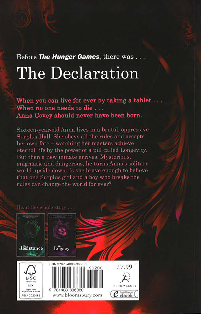 Sixteen-year-old Anna should not have been born. It is the year 2140 and people can live for ever. No one wants another mouth to feed, so she lives in a Surplus Hall, where unwanted children go to learn valuable lessons . . . at least she wasn't put down at birth. One day, a new inmate arrives. Anna's life is thrown into chaos. He says things about her parents and the Outside that couldn't possibly be true . . . Or could they? Thrilling, passionate and beautifully written, this dystopian novel is perfect for fans of The Hunger Games