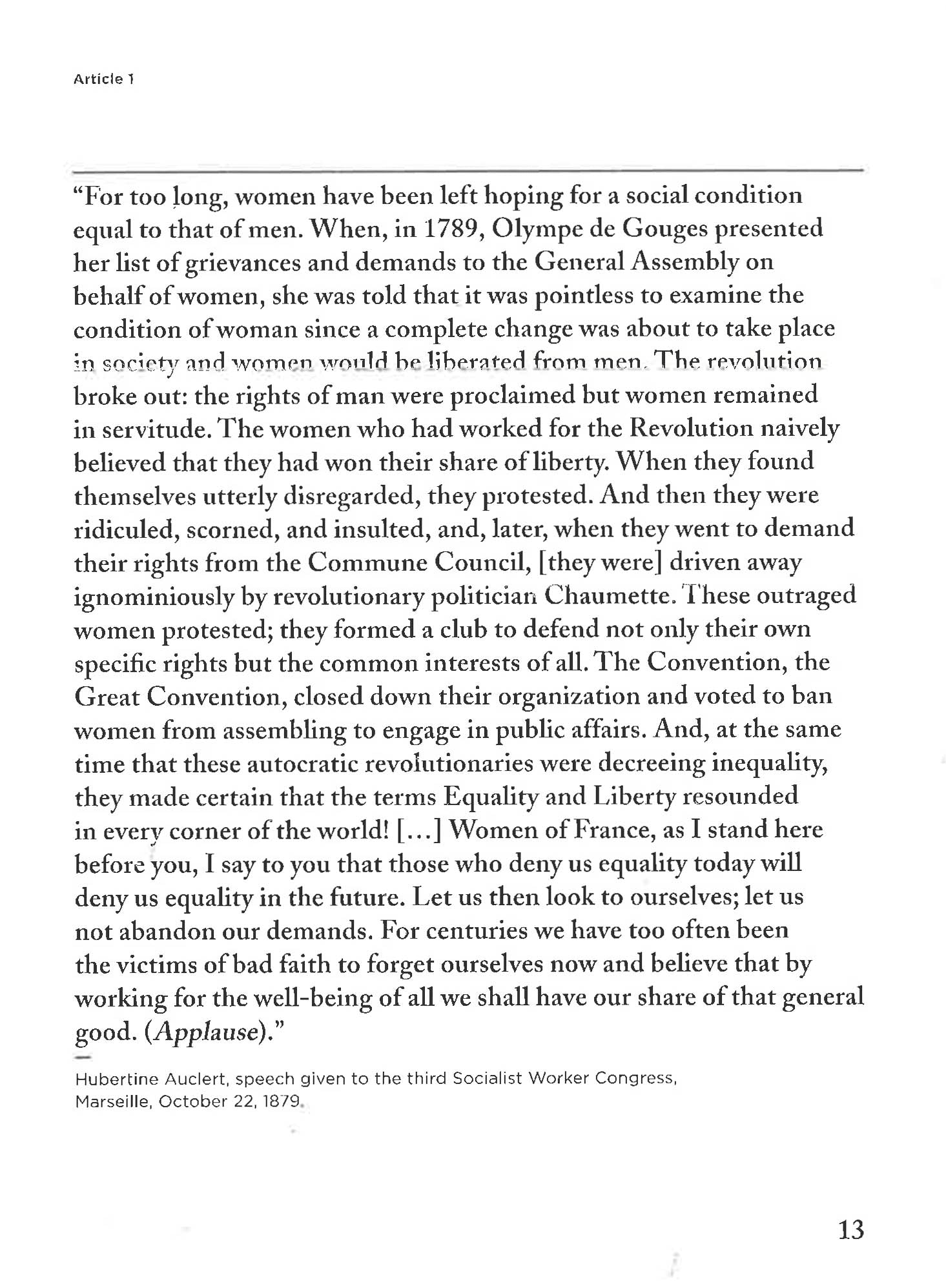 Olympe de Gouges was the most important fighter for women's rights you've never heard of. An activist and writer in revolutionary Paris, she published 'The Declaration of the Rights of Women' in 1791, and was beheaded two years later, her articulate demands for equality proving too much for their time. Over one hundred and fifty years later, the key statements of her declaration were internationally endorsed by the United Nations in its Declaration on the Elimination of Discrimination Against Women, which in turn went on to be legally recognized by nearly every country in the world. This volume presents both of these key texts along with enlightening and inspiring commentary from a host of powerful women, from Virginia Woolf to Hillary Clinton.