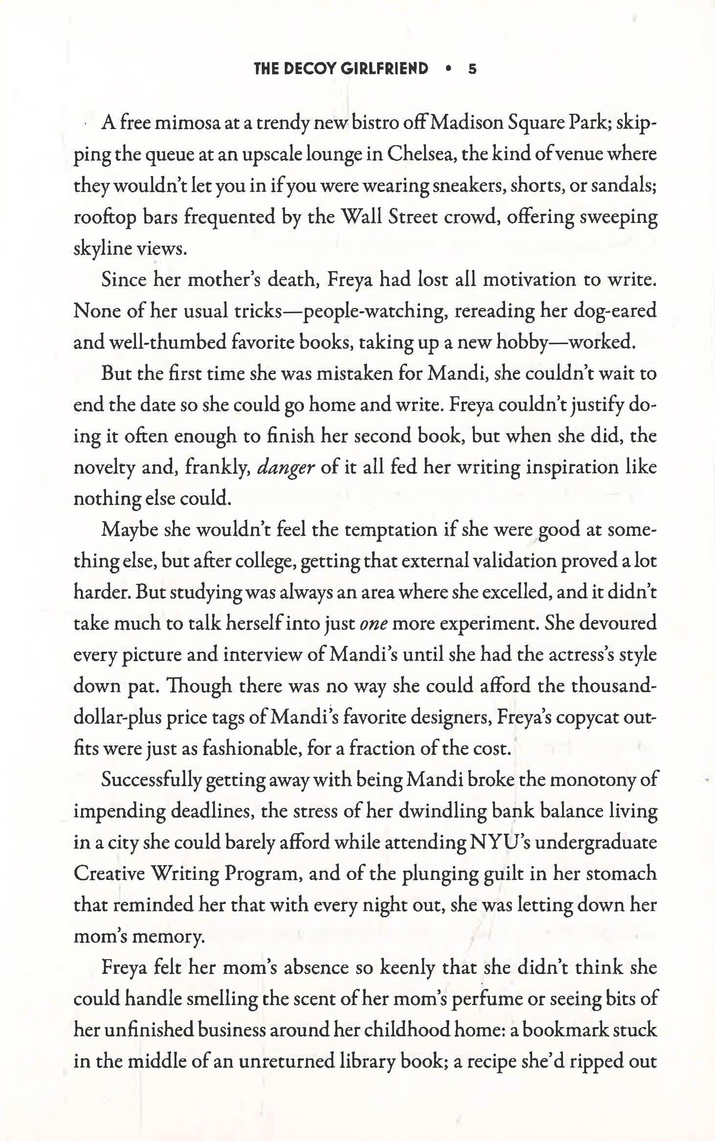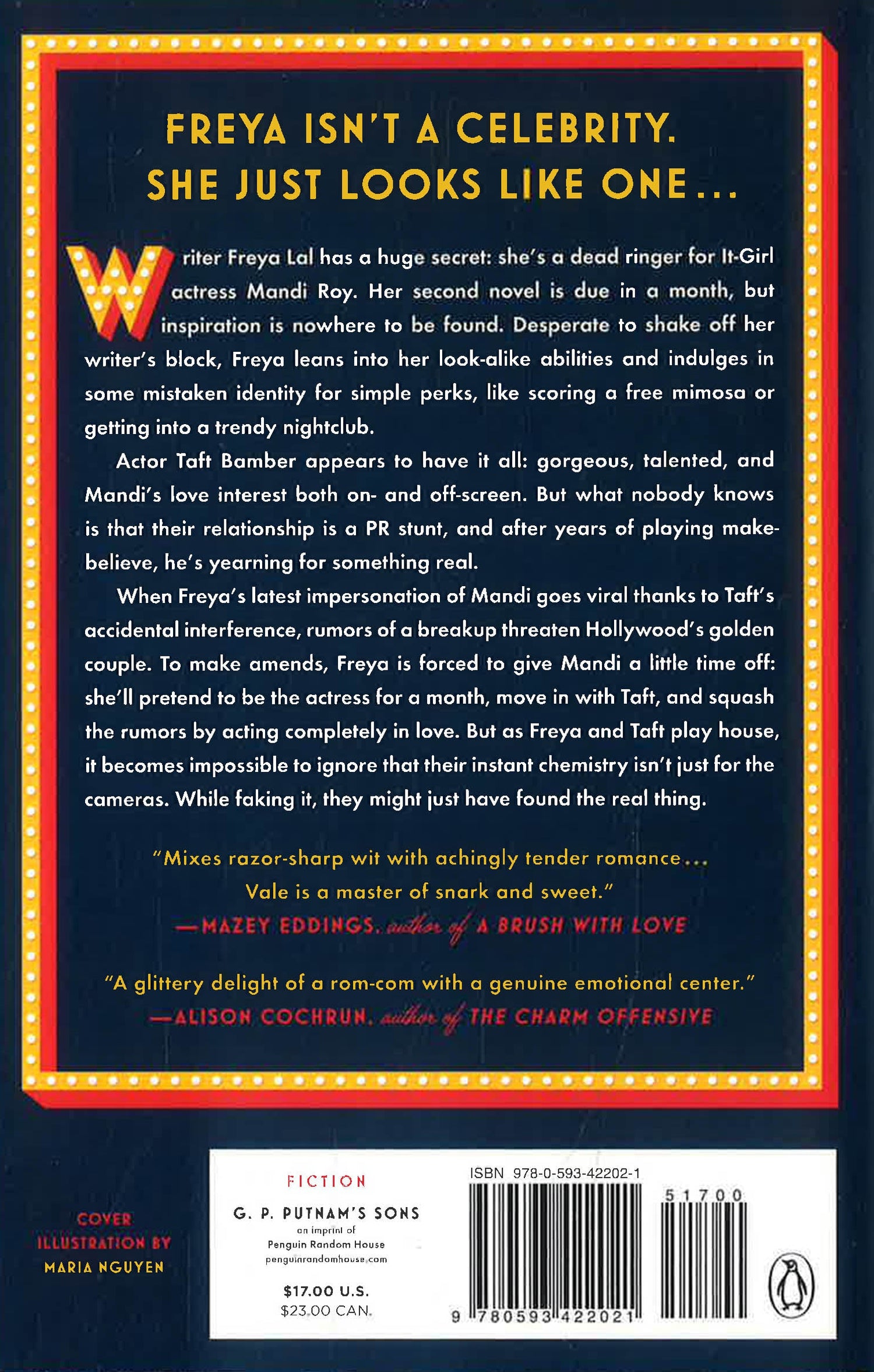 Writer Freya Lal has a huge secret: she's a dead ringer for It-girl actress Mandi Roy. Her second novel is due in a month, but inspiration is nowhere to be found. Desperate to shake off her writer's block, Freya leans into her look-alike abilities and indulges in some mistaken identity for simple perks, like scoring a free mimosa or getting into a trendy nightclub.
