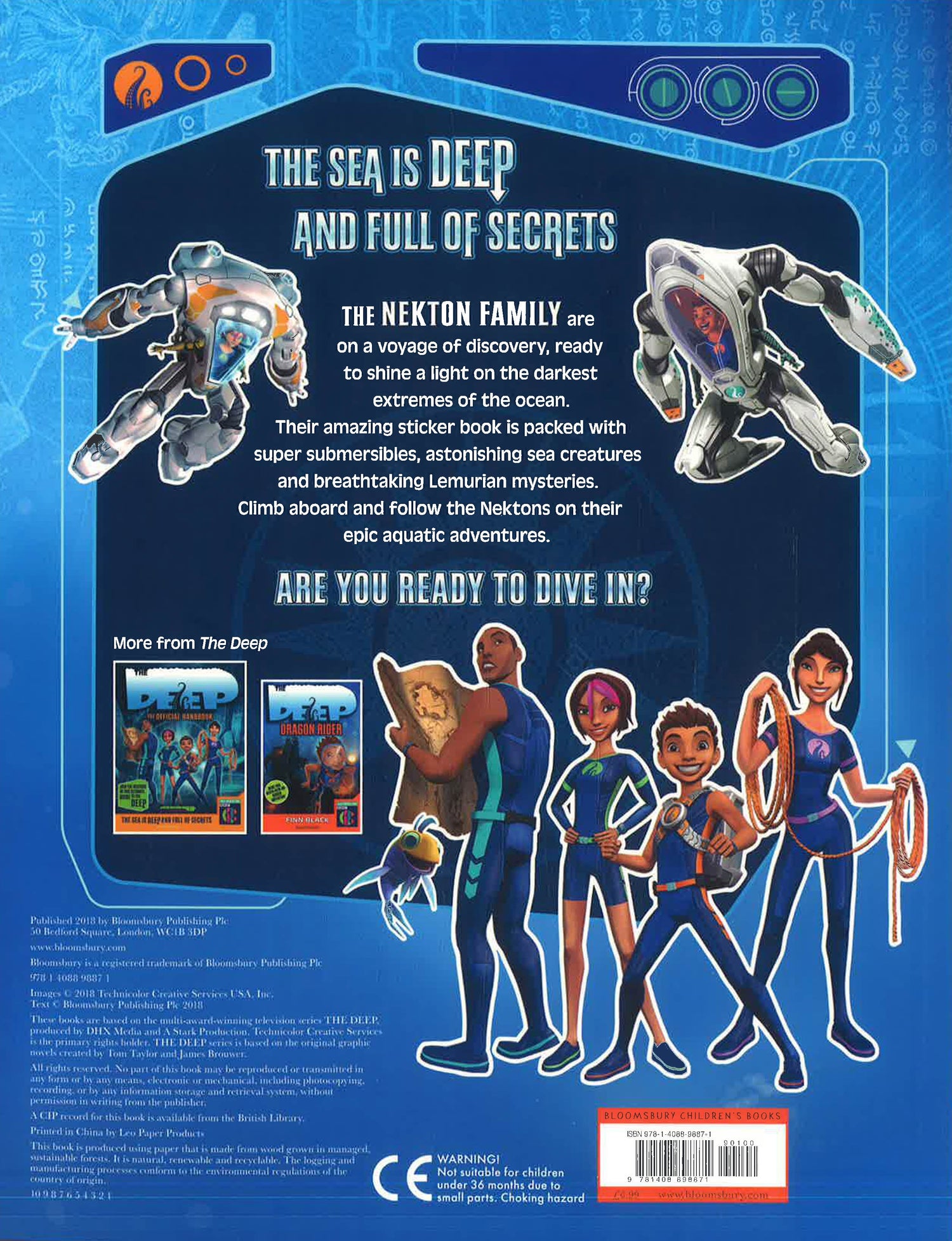 Jump into the amazing world of The Deep in this activity and sticker book that is filled with mystery, adventure and all of the wonders the deep sea has to offer. Join the Nekton family as they uncover the secrets of the lost city of Lemuria, discover magnificent sea creatures, all while trying to avoid clashes with a troublesome band of pirates lead by the fierce Captain Hammerhead.