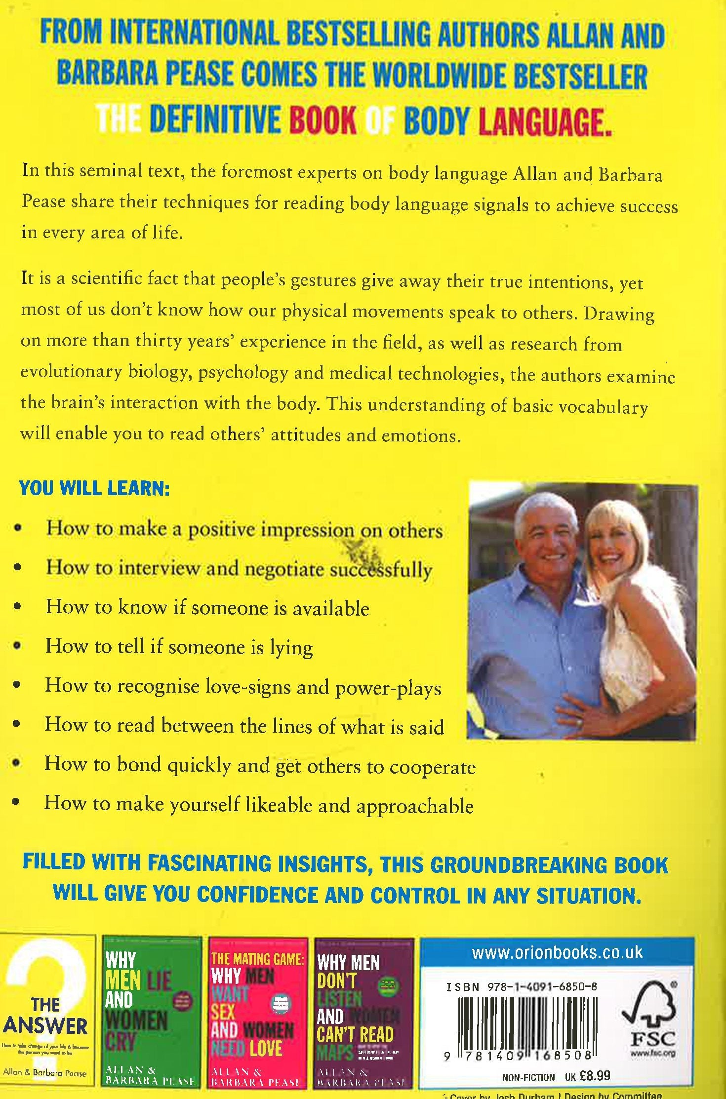This international bestseller explains everything you need to know about body language, how to read it, and how to put your best self forwards. What people say is often very different to what they think or feel. Now, with "The Definitive Book of Body Language," you can learn to read others people's thoughts by their gestures. It sounds implausible, but body language is easy to pick up and fun to use. Find out: How to tell if someone is lying? How to make yourself likeable? How to get co-operation from other people? How to interview and negotiate successfully? How to choose a partner? Learn the secrets of body language with Allan and Barbara Pease, bestselling authors of "Why Men Don't Listen and Women Can't Read Maps.