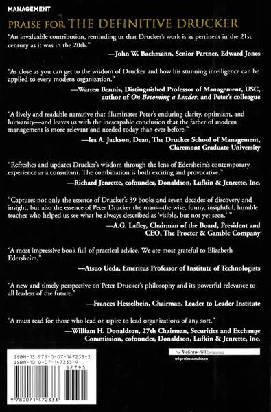 We need a new theory of management. The assumptions built into business today are not accurate.-Peter Drucker For sixteen months before his death, Elizabeth Haas Edersheim was given unprecedented access to Peter Drucker, widely regarded as the father of modern management. At Drucker's request, Edersheim, a respected management thinker in her own right, spoke with him about the development of modern business throughout his life-and how it continues to grow and change at an ever-increasing rate. The Definitive Druckercaptures his visionary management concepts, applies them to the key business risks and opportunities of the coming decades, and imparts Drucker's views on current business practices, economic changes, and trends-many of which he first predicted decades ago. It also sheds light onto issues such as why so many leaders fail, the fragility of our economic systems, and the new role of the CEO. Drucker's insights are divided into five main themes that the modern organization needs to, as Drucker would say, create tomorrow by