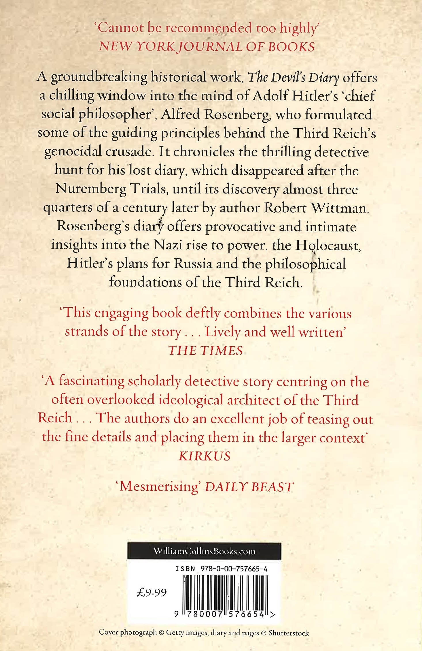 Only recently discovered by former FBI agent Robert Wittman, the diary of Nazi philosopher Alfred Rosenberg, who led the Nazi party when Hitler was interned in 1923, is a ground-breaking document and an object of rumour, obsession and evil. Filled with observations, conversations and Nazi plans, it gives new details of Hitler's rise to power and personal governance of the Reich. Not simply the Nazi ideological progenitor, Rosenberg was a core member of Hitler's inner circle: his ideas for the Third Reich and the destruction it wrought laid the foundations for a brainwashed nation and gave its people the justification for the slaughter of millions; he helped plan the Nazi invasion and subsequent occupation of the Soviet Union and was named Reich Minister for the Eastern Territories.
