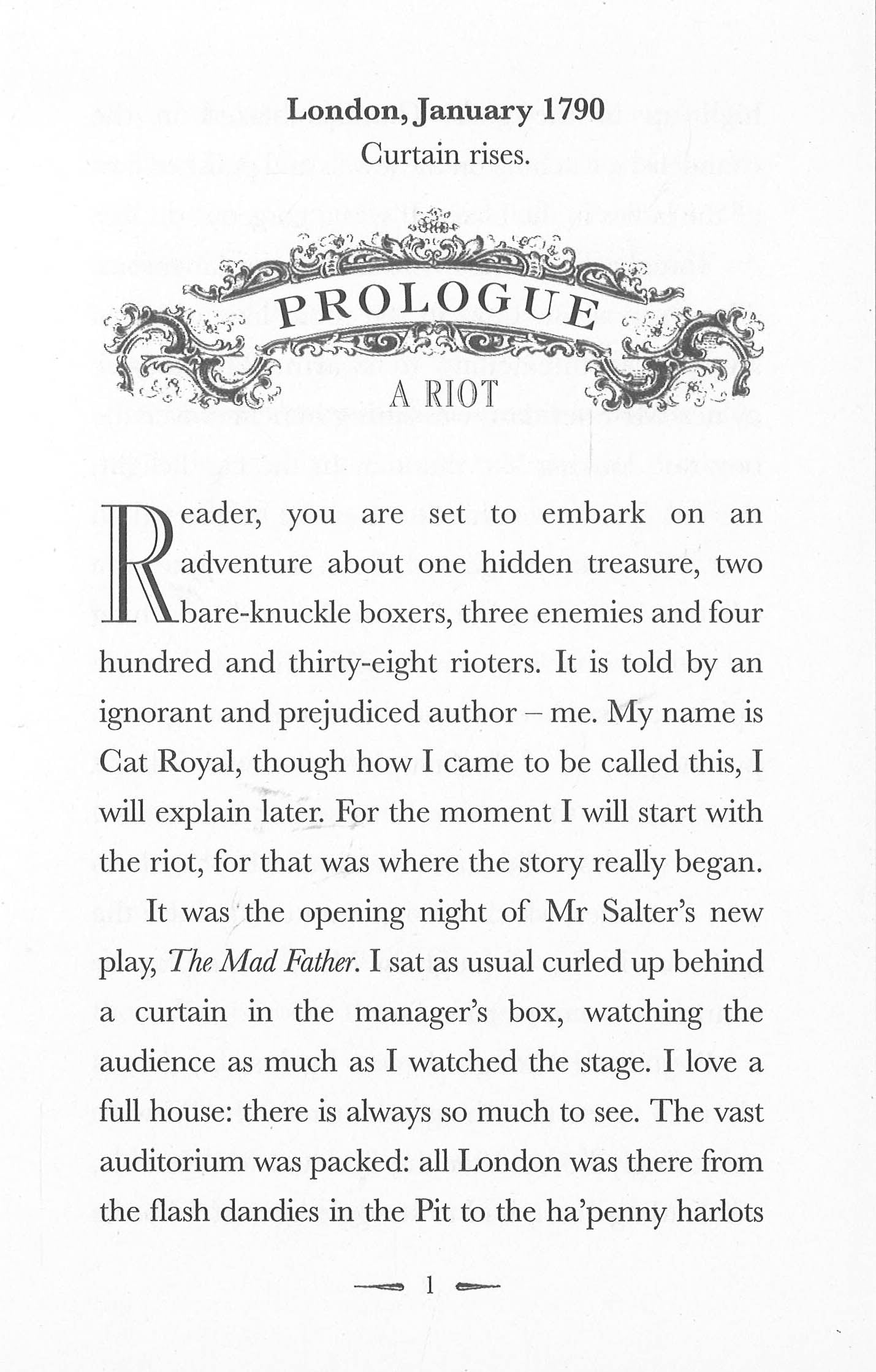 Set in 1790's Covent Garden this is the story of Cat Royal, an orphan who lives at the theatre in Drury Lane.Adopted by the owner after being mysteriously abandoned as a baby on the steps of his infamous establishment, Cat has grown up backstage. When Cat overhears a conversation about a diamond hidden somewhere in the theatre, she's determined to find the treasure.Ably assisted by Pedro, a musician in the company orchestra, she is thrust into a world of drama and intrigue, where she encounters Covent Garden street gangs, boxing matches, theatre riots and spectacular stage productions. En route, she learns a lot about who she is, and who her real friends are...