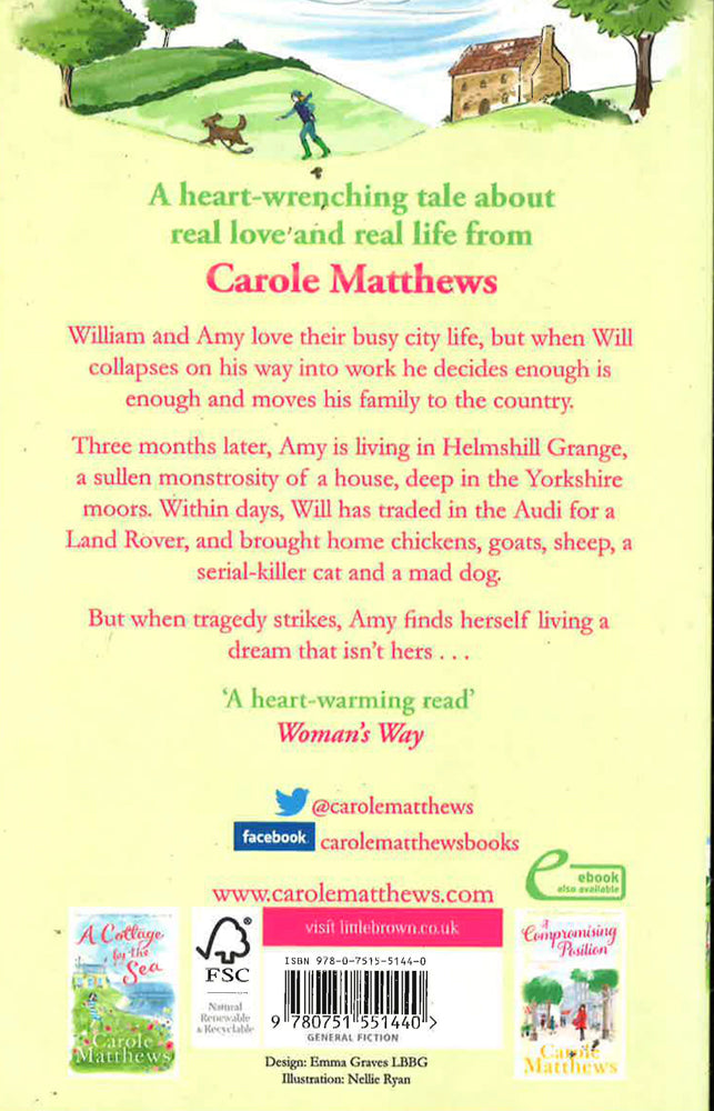Three months later, Amy is standing outside Helmshill Grange, a sullen monstrosity of a house, deep in the Yorkshire moors. Within days, Will has traded in the Audi for a Land Rover, and brought home chickens, goats, sheep, a serial-killer cat and a mad dog.