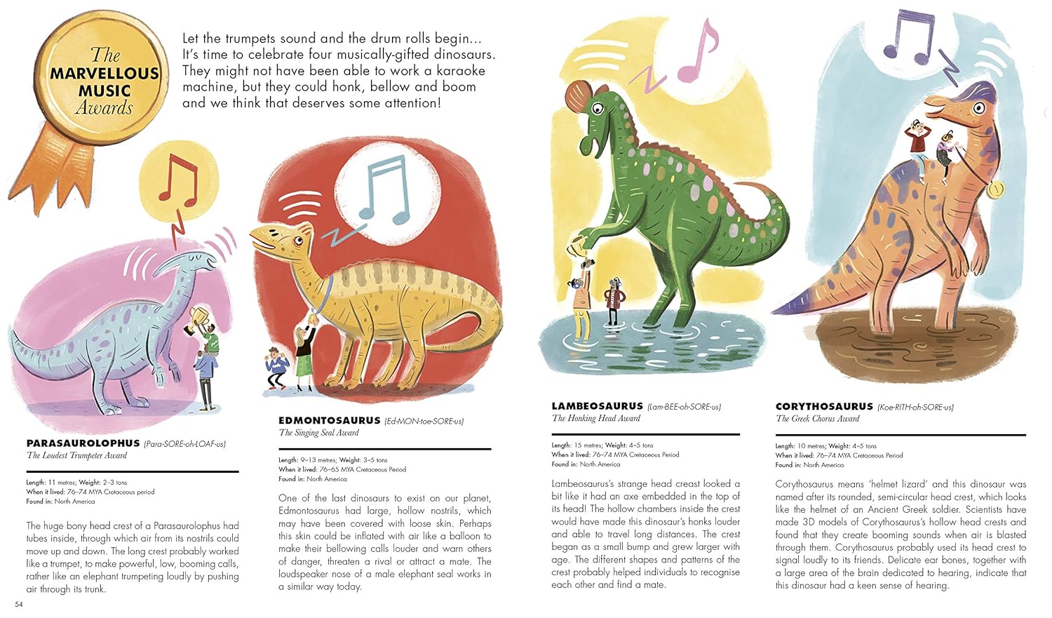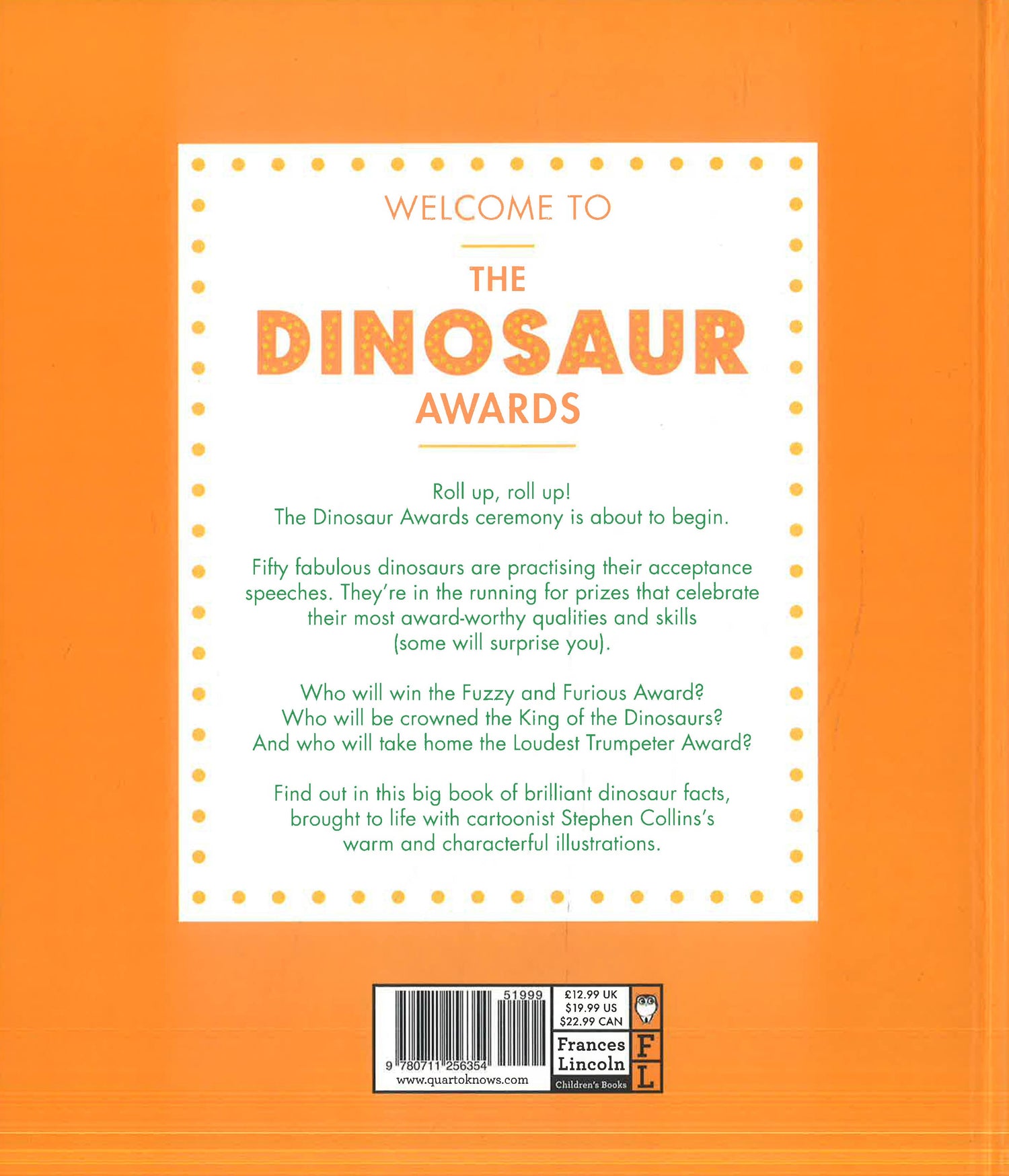 Celebrate 50 of the most dynamic dinosaurs with this incredible compendium, illustrated by Stephen Collins. In the Dinosaur Awards, prehistoric creatures big and small are awarded prizes to celebrate their most dazzling talents and unusual skills.