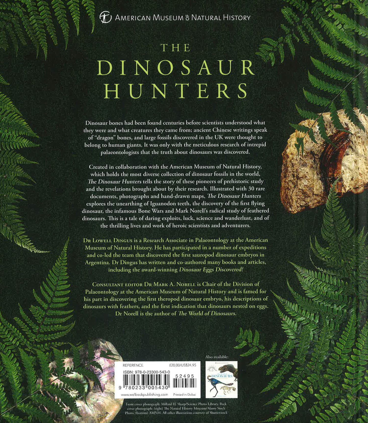 The Dinosaur Hunters tells the story of these discoverers of prehistoric life, and the revelations found through their research. Illustrated with 30 rare documents, photographs and hand-drawn maps, it explores the unearthing of Iguanodon teeth, the discovery of the first flying dinosaur, the infamous Bone Wars and consultant editor Dr Mark Norell's radical study of feathered dinosaurs. This is a tale of daring exploits, luck, science and wanderlust, and of the thrilling lives and work of heroic scientists and adventurers.
