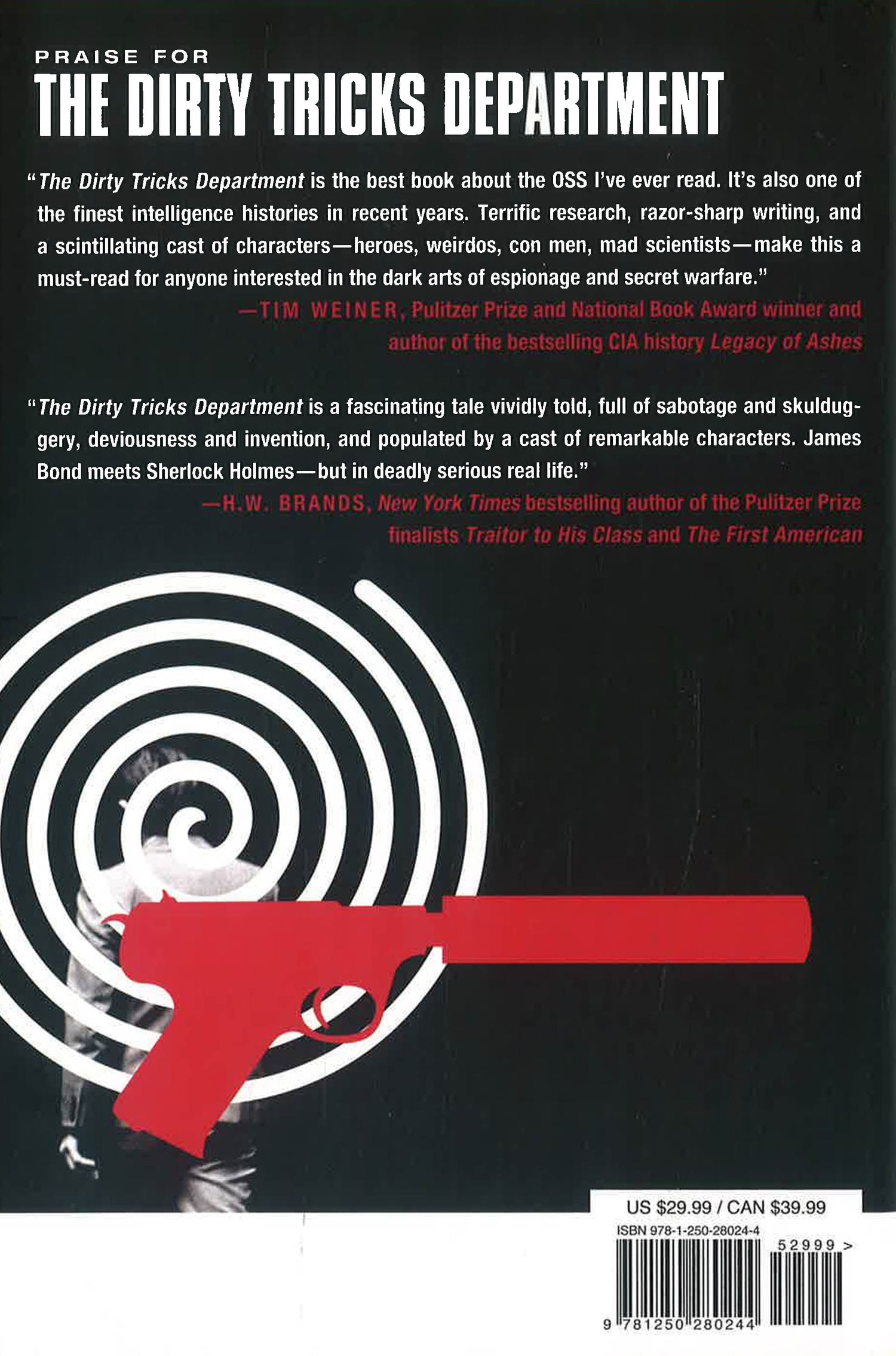 Based on extensive archival research and personal interviews, The Dirty Tricks Department tells the story of these scheming scientists, explores the moral dilemmas that they faced, and reveals their dark legacy of directly inspiring the most infamous program in CIA history: MKULTRA.