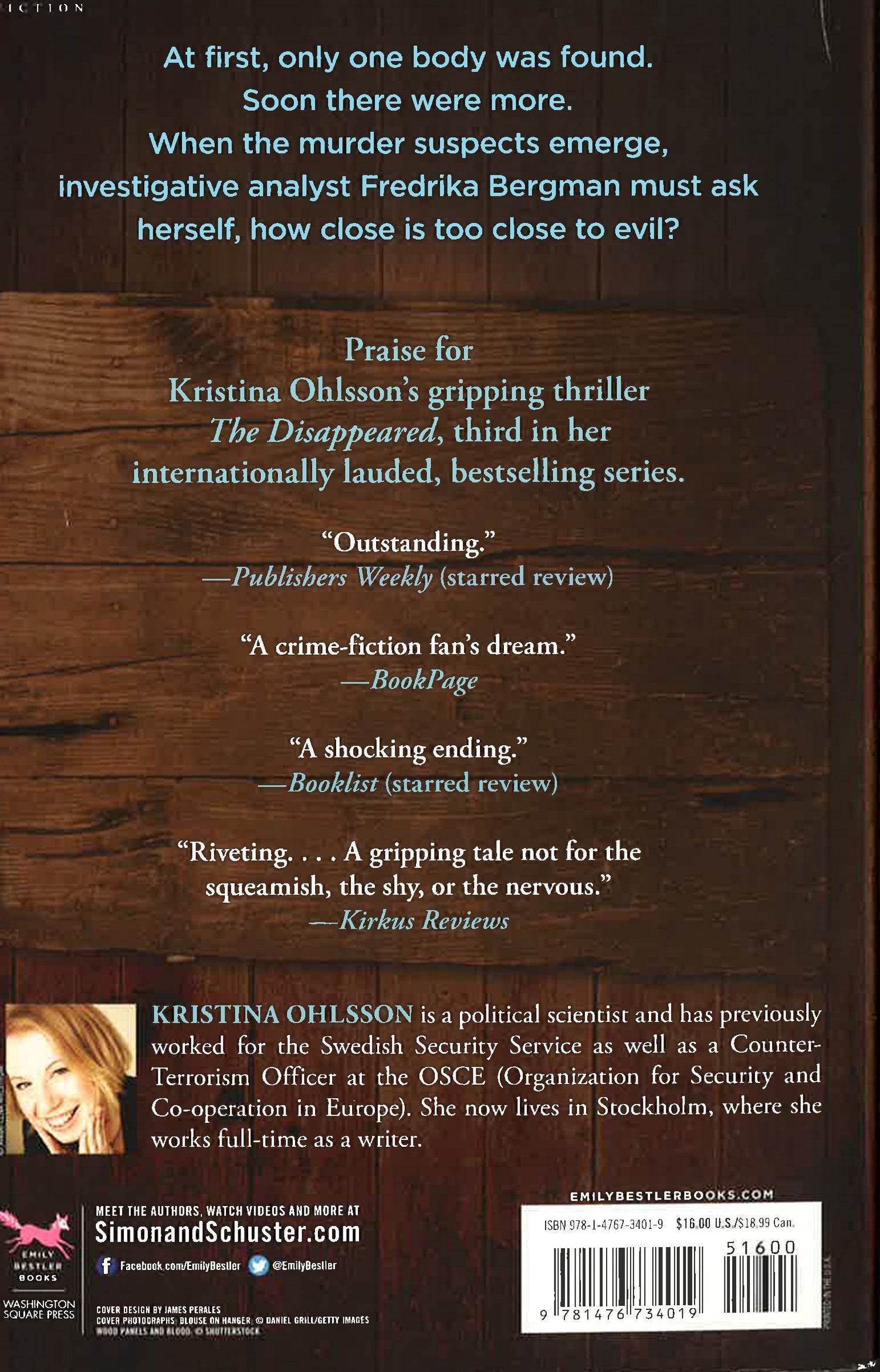 From "one of Sweden's best younger writers" (Los Angeles Times Magazine) and a "talented new author" (Booklist) comes this riveting third book in the critically acclaimed Fredrika Bergman crime series. A young woman on her way to a party vanishes without a trace, and it's not until two years later that her body turns up. Mercilessly dismembered, it has deteriorated considerably in its lonely burial spot on the edge of a forest. The forensic team is able to identify the body as that of Rebecca Tolle, a student at the nearby university. Investigative analyst Fredrika Bergman and her team are assigned to solve the case and question those who may be responsible for Rebecca's brutal death. Soon, more bodies are found in the same area. But the killer is still at large. As Fredrika digs into the case, she discovers that when Rebecca died, she was researching a person with a dark past - one that Rebecca seems to have uncovered. Fredrika is deeply invested in the already heart-wrenching case, but when her lover's name comes up as a possible suspect, it might be too much for her to bear... "A gripping tale not for the squeamish, the shy, or the nervous" (Kirkus Reviews), The Disappeared is internationally bestselling author Kristina Ohlsson's most mesmerizing thriller yet.