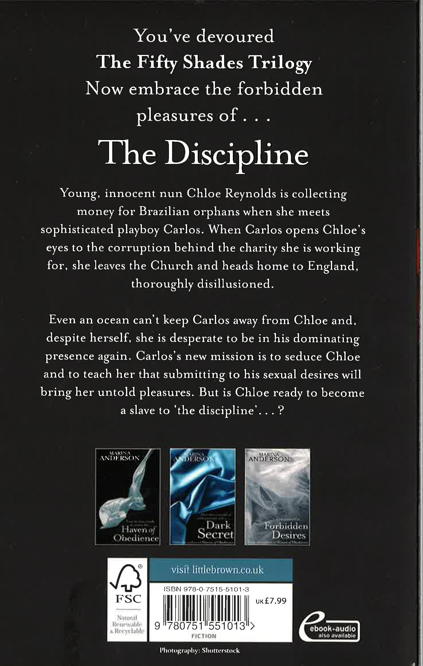 You've devoured The Fifty Shades Trilogy. . . now it's time to embrace the forbidden pleasures of The Discipline. From the author of Haven of Obedience You've devoured The Fifty Shades Trilogy. . . now it's time to embrace the forbidden pleasures of The Discipline.Young innocent nun Chloe Reynolds is collecting money for Brazilian orphans when she meets sophisticated playboy Carlos. When Carlos opens Chloe's eyes to the corruption behind the charity she is working for, she leaves the Church and heads home to England, thoroughly disillusioned.Even an Ocean can't keep Carlos away from Chloe and she is equally desperate to again be in his dominating presence. Carlos's new mission is to seduce Chloe and to teach her that submitting to his sexual desires will bring her untold pleasures. But is Chloe ready to become a slave to 'the discipline'...?