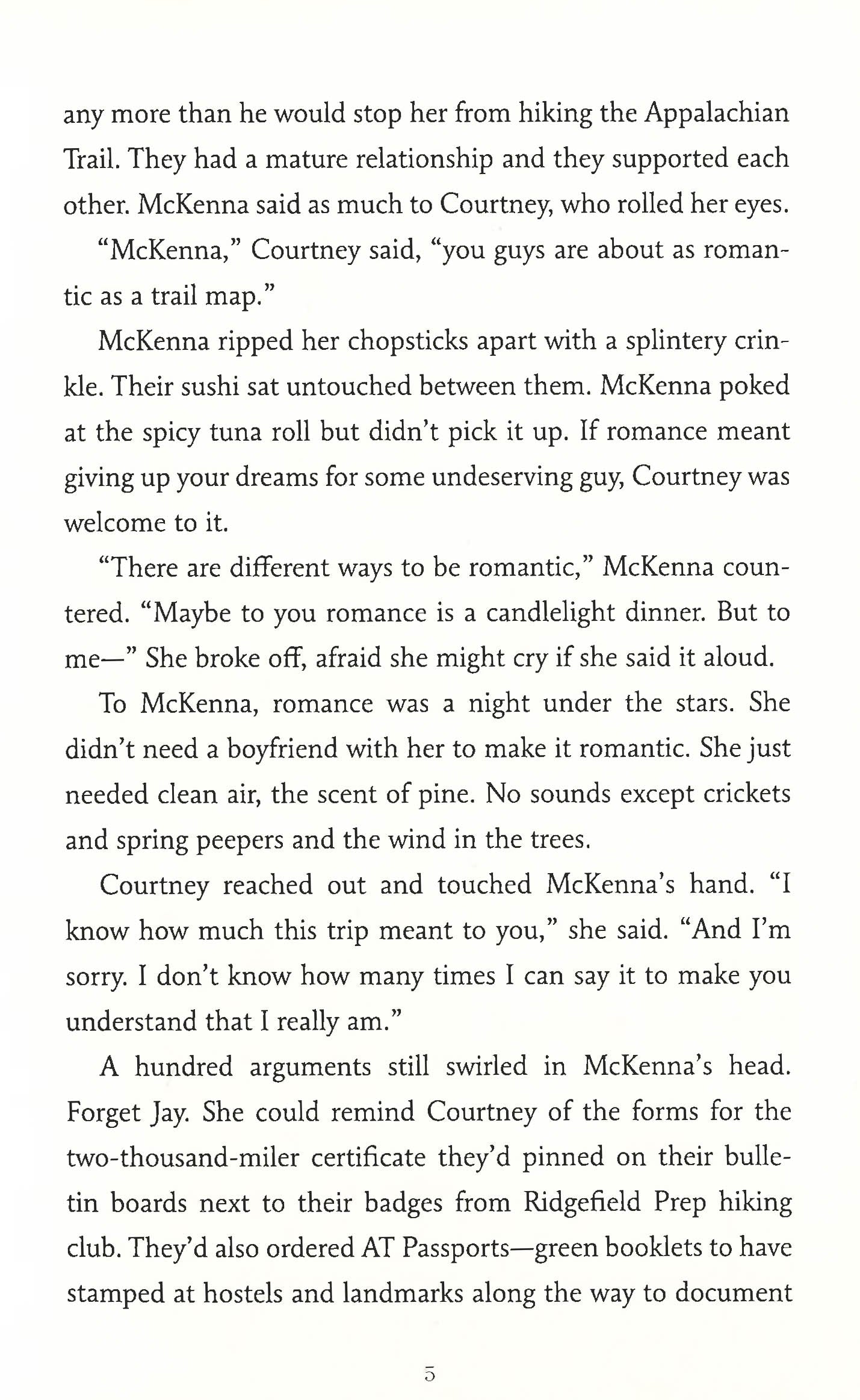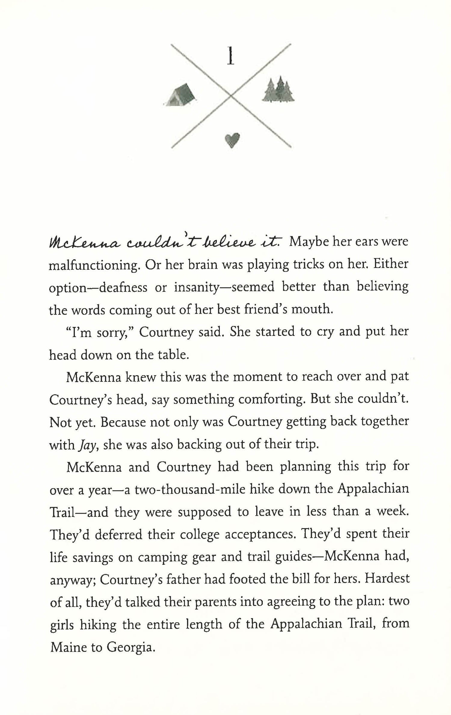 Wild meets Endless Love in this multilayered story of love, survival, and self-discovery McKenna Berney is a lucky girl. She has a loving family and has been accepted to college for the fall. But McKenna has a different goal in mind: much to the chagrin of her parents, she defers her college acceptance to hike the Appalachian Trail from Maine to Georgia with her best friend. And when her friend backs out, McKenna is determined to go through with the dangerous trip on her own. While on the Trail, she meets Sam. Having skipped out on an abusive dad and quit school, Sam has found a brief respite on the Trail, where everyone's a drifter, at least temporarily. Despite lives headed in opposite directions, McKenna and Sam fall in love on an emotionally charged journey of dizzying highs and devastating lows. When their punch-drunk love leads them off the trail, McKenna has to persevere in a way she never thought possible to beat the odds or risk both their lives.