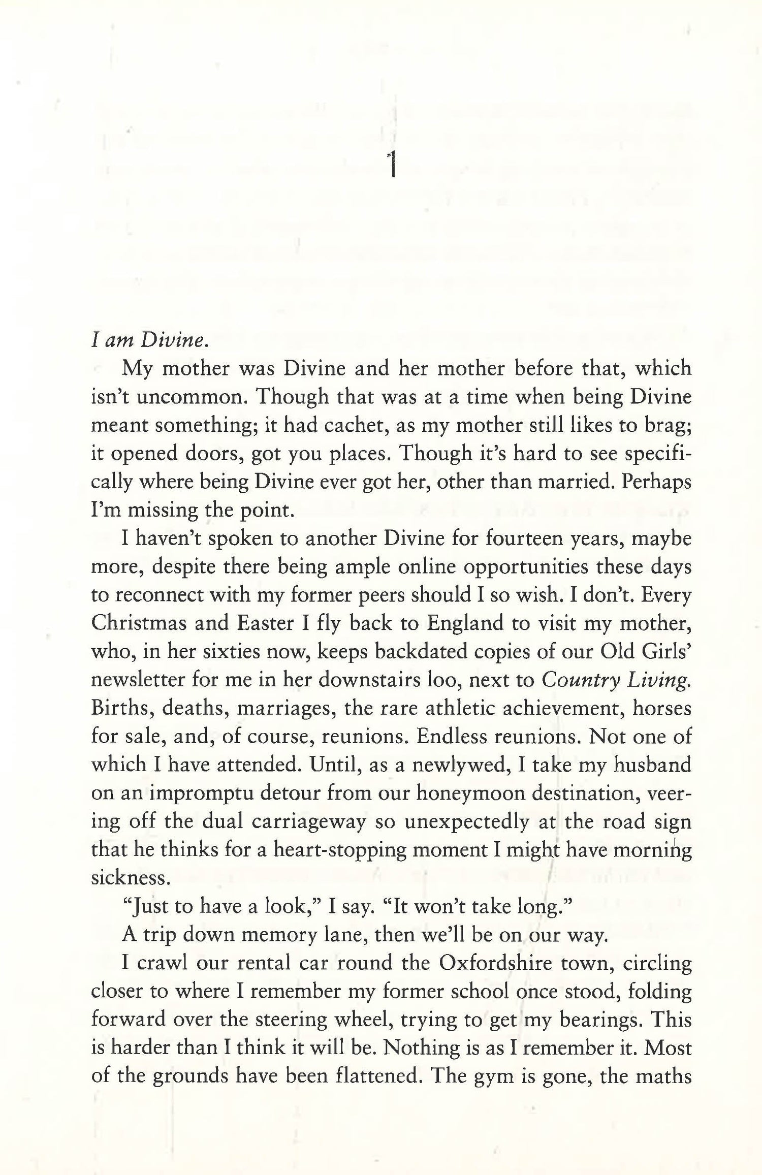 The girls of St John the Divine, an elite English boarding school, were notorious for flipping their hair, harassing teachers, chasing boys, and chain-smoking cigarettes. They were fiercely loyal, sharp-tongued, and cuttingly humorous in the way that only teenage girls can be. For Josephine, now in her thirties, the years at St John were a lifetime ago. She hasn't spoken to another Divine in fifteen years, not since the day the school shuttered its doors in disgrace.