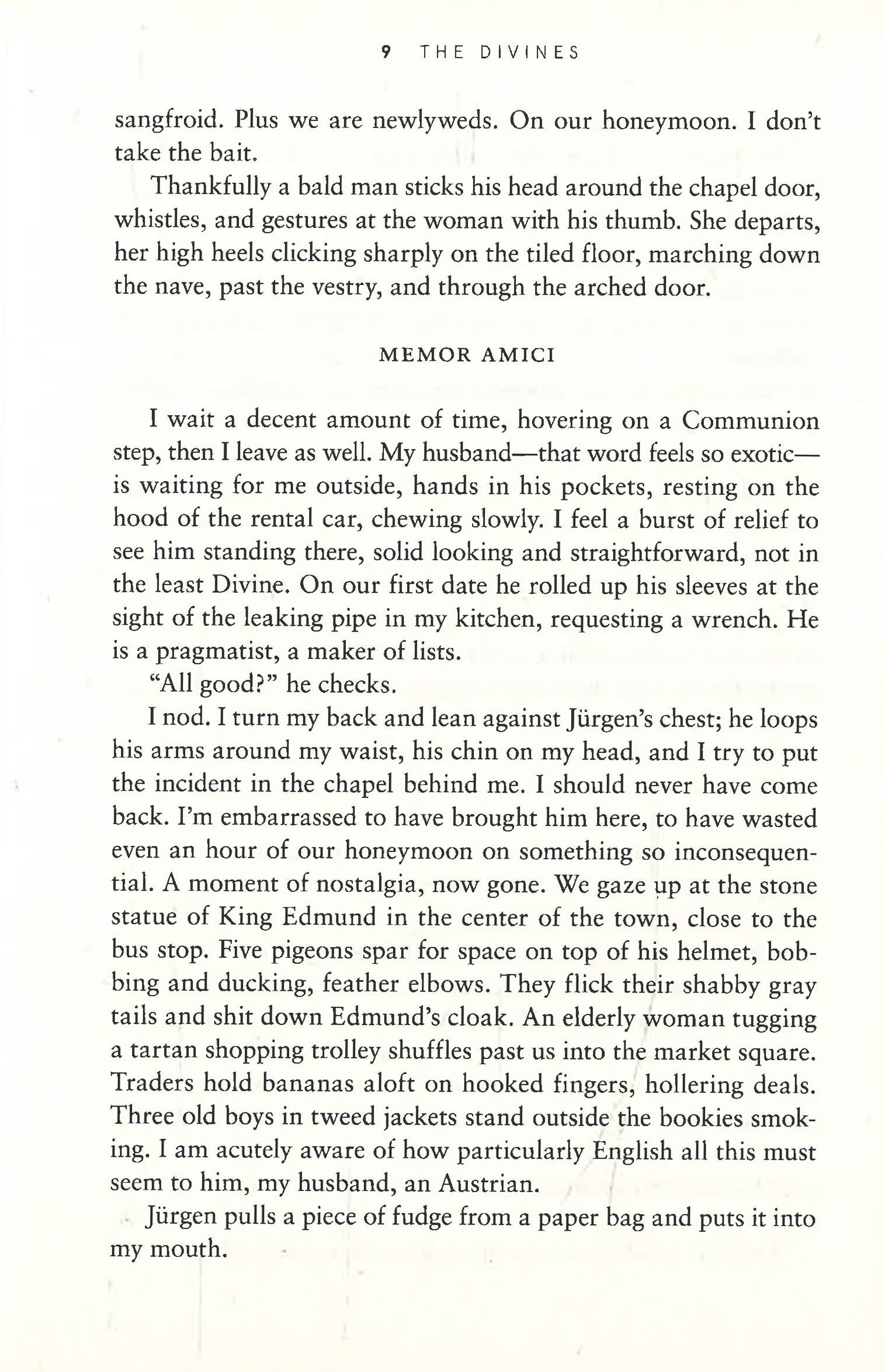 Suspenseful, provocative, and compulsively readable, The Divines explores the tension between the lives we lead as adults and the experiences that form us, probing us to consider how our memories as adults compel us to reexamine our pasts.