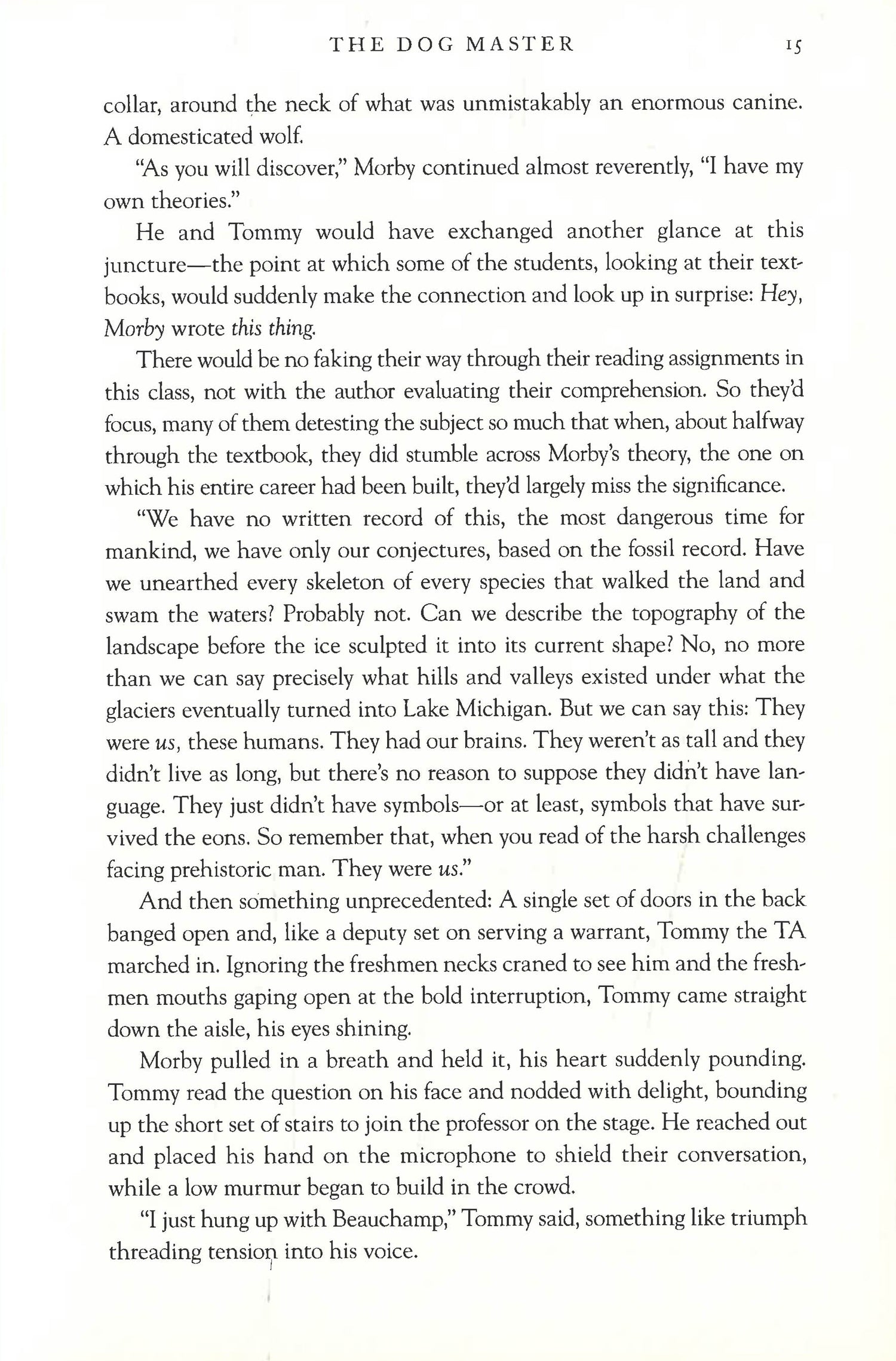 Set against the most dramatic time in our species' history, The Dog Master tells the story of one tribe's struggle for survival and one extraordinary man's bond with a wolf--a friendship that changed mankind forever.