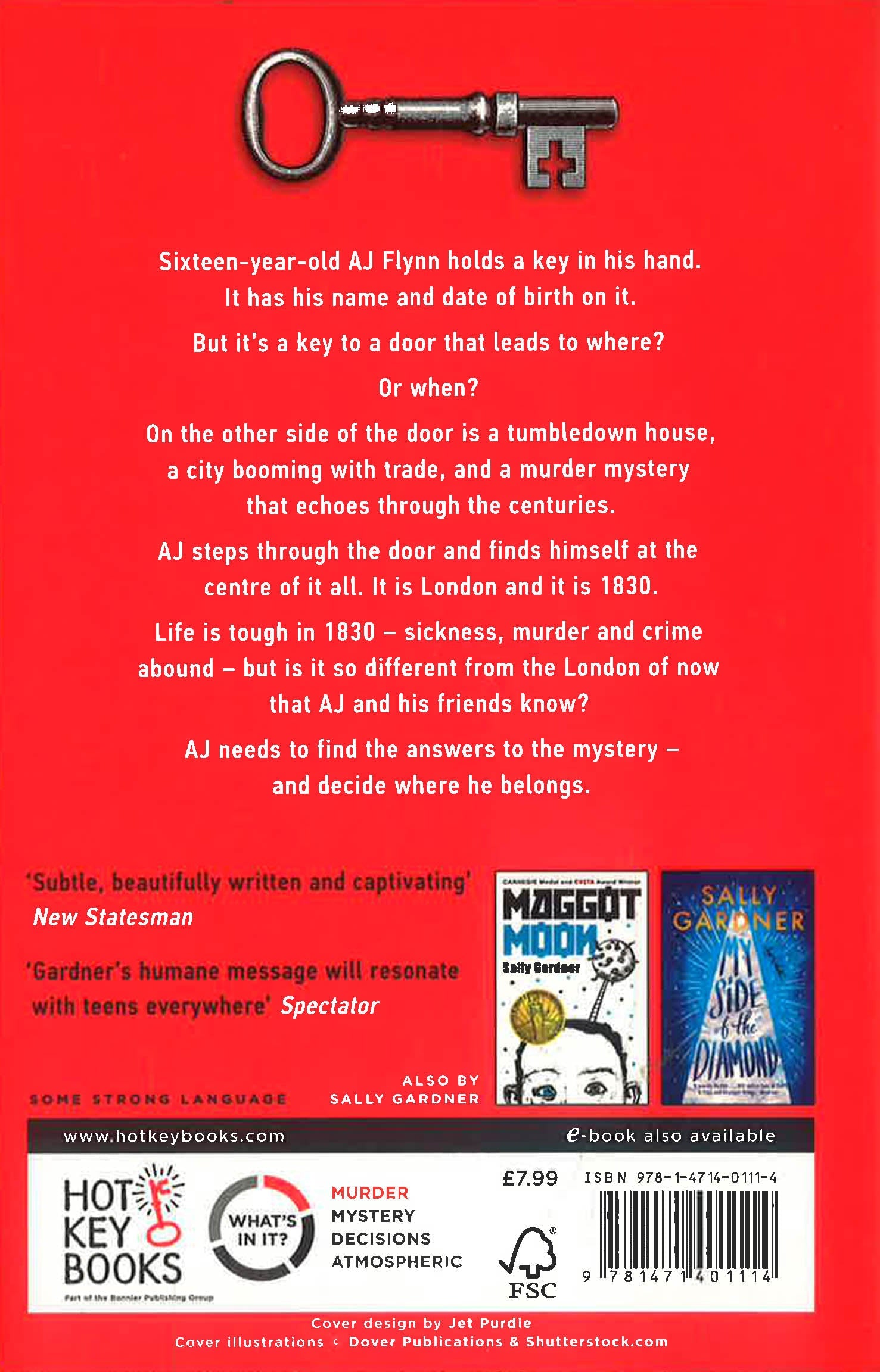 Tidying up the archive one day, AJ finds an old key, mysteriously labelled with his name and date of birth - and he becomes determined to find the door that fits the key. And so begins an amazing journey to a very real and tangible past - 1830, to be precise - where the streets of modern Clerkenwell are replaced with cobbles and carts, and the law can be twisted to suit a villain's means. Although life in 1830 is cheap, AJ and his friends quickly find that their own lives have much more value. They've gone from sad youth statistics to young men with purpose - and at the heart of everything lies a crime that only they can solve. But with enemies all around, can they unravel the mysteries of the past, before it unravels them?