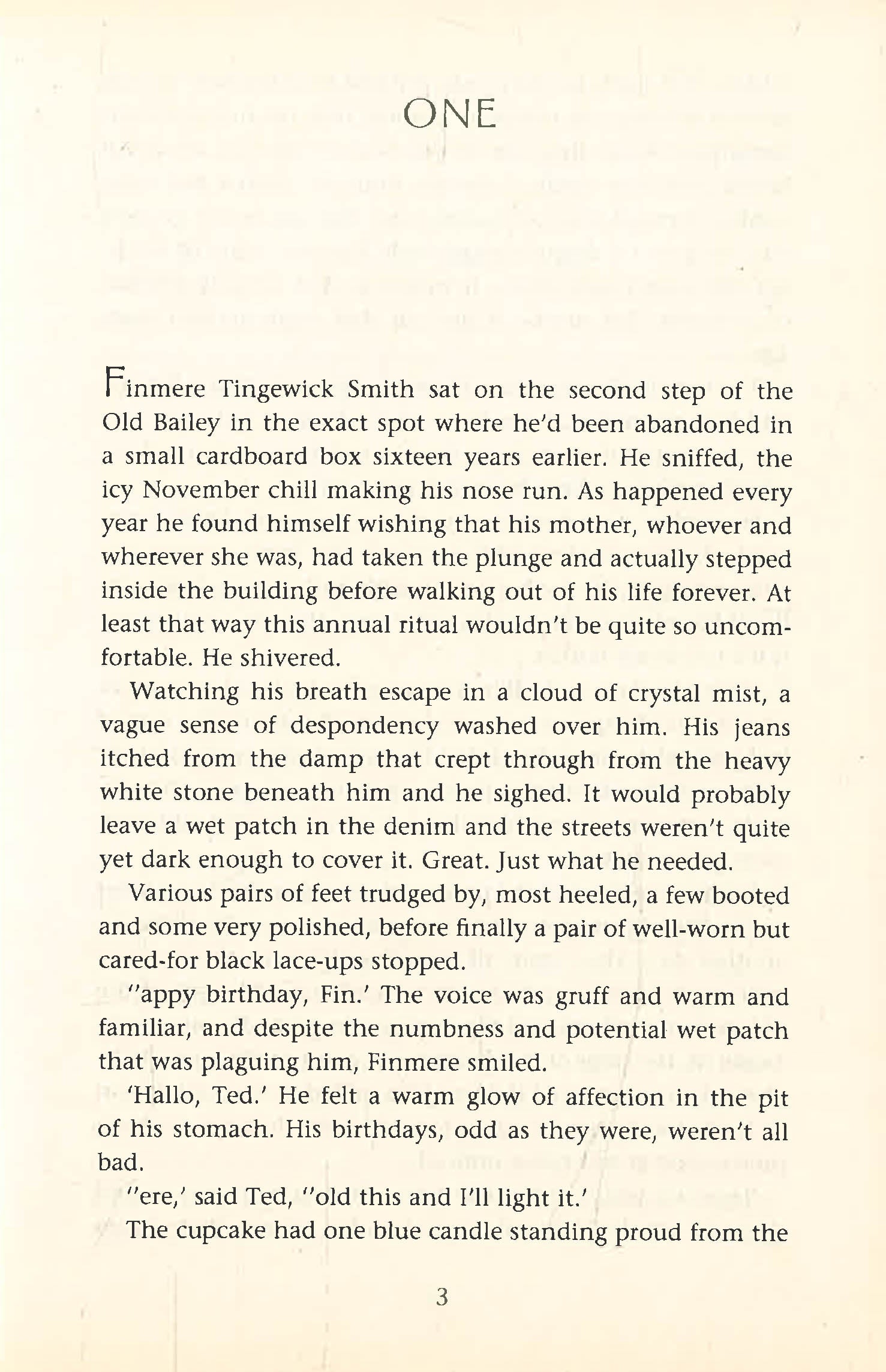 Finmere Tingewick Smith was abandoned on the steps of the Old Bailey. Under the guardianship of the austere Judge Harlequin Brown and the elderly gentlemen of Orrery House, Fin has grown up under a very strange set of rules. He spends alternate years at two very different schools and now he's tired of the constant lies to even his best friends, to hide the insanity of his double life. Neither would believe the truth!