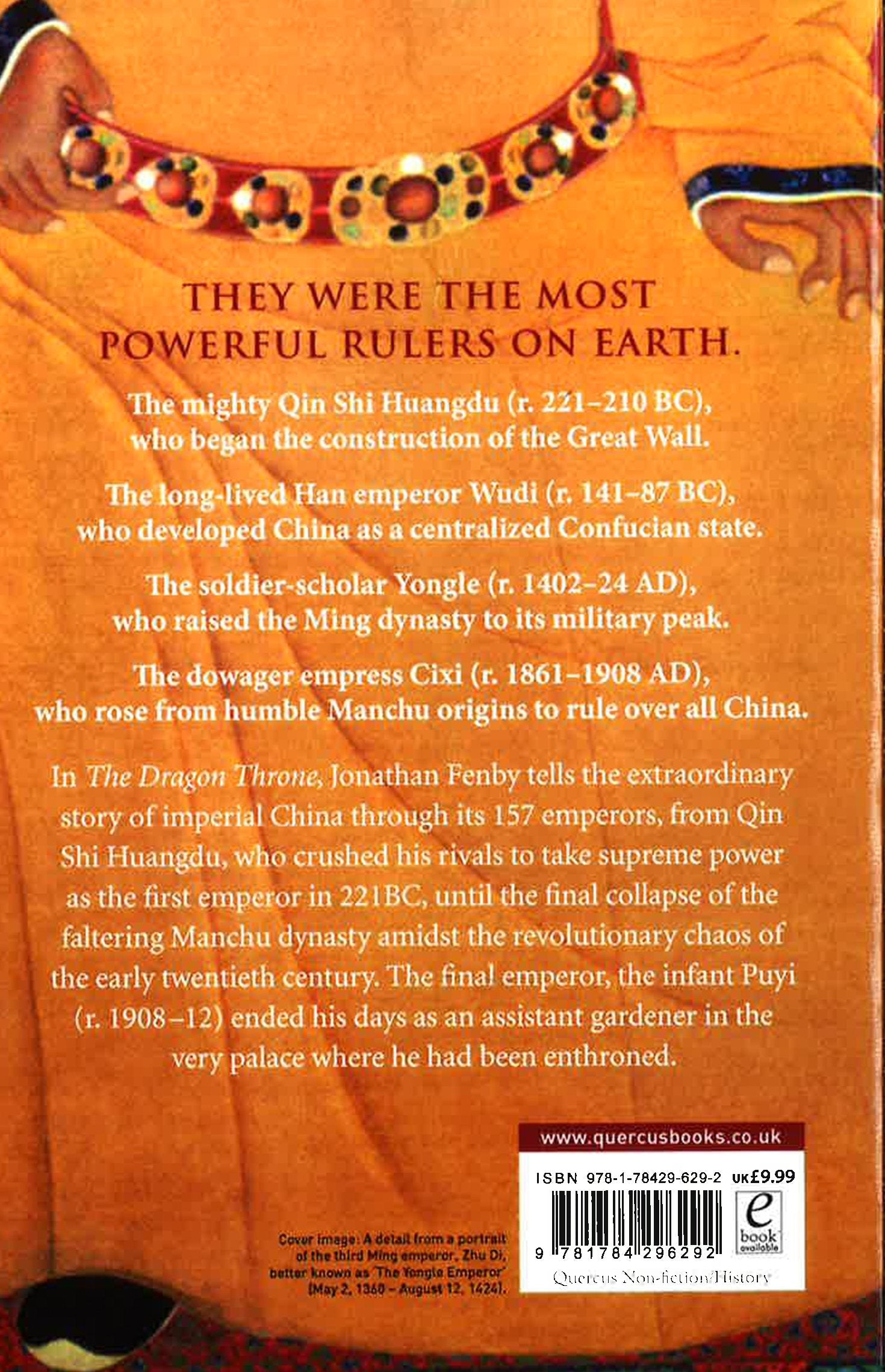 From 221 BC - when Shi Huangdi, First Emperor and founding father of Chinese imperial history, unified a large part of the Han Chinese homeland - until 1911, when imperial China collapsed in revolutionary chaos, China was ruled by a succession of powerful imperial dynasties. "The Dragon Throne" tells their rich, complex and often turbulent story, from the inception of the Qin dynasty to the fall of the Manchu in the early 20th century.China's imperial dynasties display a recurring pattern of birth, growth, prosperity and collapse due to external pressures. A number of powerful emperors left a particularly strong imprint on this troubled history, whether as conquerors, consolidators, tyrants, reformers or reactionaries. At the heart of "The Dragon Throne" are vivid profiles of such emperors as Shi Huangdi, who began the construction of the Great Wall; Han Wudi, the Han emperor who developed China as a centralized Confucian state; Kublai Khan, the first emperor of the Mongol Yuan dynasty, and Hongwu, the founder of the Ming dynasty.