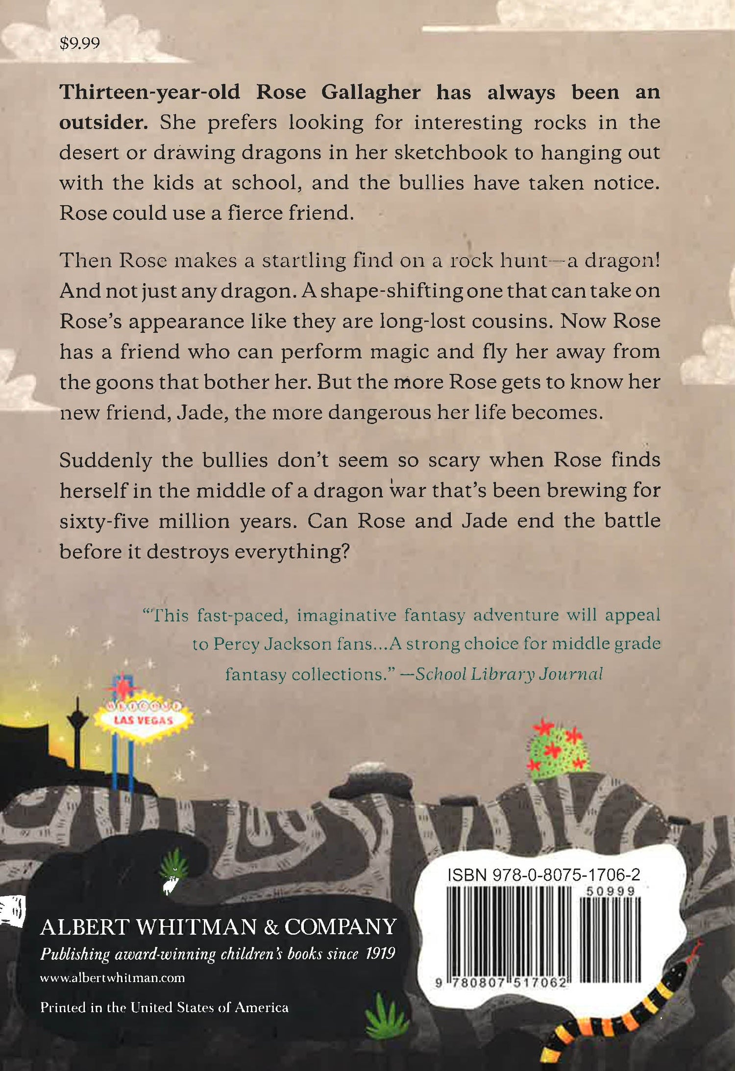 For 13-year old Rose, it feels like a dream come true to have a friend who can perform magic, change shape, and fly her away from the predictability of smalltown life. But secrets have a price, and the more Rose learns about the world of dragons, the more dangerous her life becomes. Helped only by her fantasy-obsessed friend and a local occult enthusiast, Rose soon finds herself risking her life to help Jade recover a mysterious fragment of a meteorite called the Harbinger which has the power to awaken countless dragons from their 65-million year slumber. But Jade isn't the only one who wants the Harbinger. The most powerful man in Las Vegas is actually another dragon who wants the stone to fulfill his own ambitions. The fragile bond between Rose and Jade is put to the test as they face this cunning enemy and his plot to replace humanity with the prehistoric civilization of dragons. As their battle unfolds over the neon-drenched skies of Las Vegas, Rose must face this overwhelming threat by drawing on the magic that humans possess--the power of friendship, compassion, and trust.
