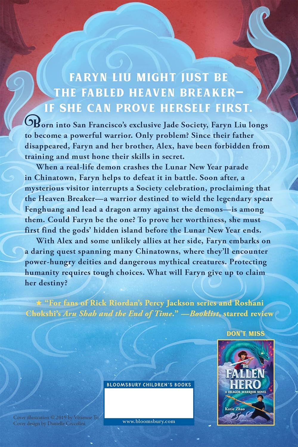 Then, during an errand into San Francisco, Faryn stumbles into a battle with a demon--and helps defeat it. She just might be the fabled Heaven Breaker, a powerful warrior meant to work for the all-mighty deity, the Jade Emperor, by commanding an army of dragons to defeat the demons. That is, if she can prove her worth and find the island of the immortals before the Lunar New Year.