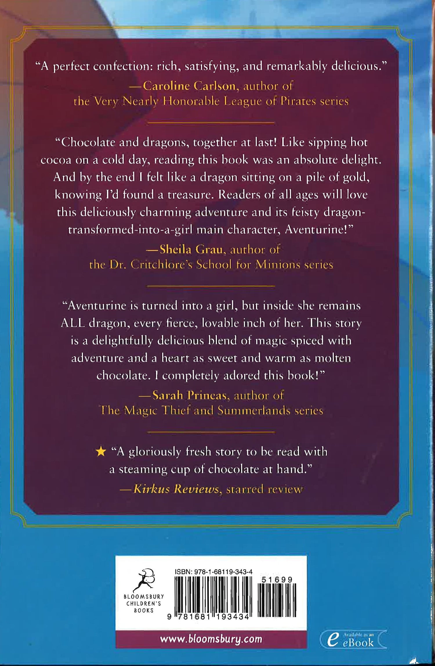 Aventurine is a brave young dragon ready to explore the world outside of her family's mountain cave . . . if only they'd let her leave it. Her family thinks she's too young to fly on her own, but she's determined to prove them wrong by capturing the most dangerous prey of all: a human.But when that human tricks her into drinking enchanted hot chocolate, she's transformed into a puny human without any sharp teeth, fire breath, or claws. Still, she's the fiercest creature in these mountains--and now she's found her true passion: chocolate. All she has to do is get to the human city to find herself an apprenticeship (whatever that is) in a chocolate house (which sounds delicious), and she'll be conquering new territory in no time . . . won't she?